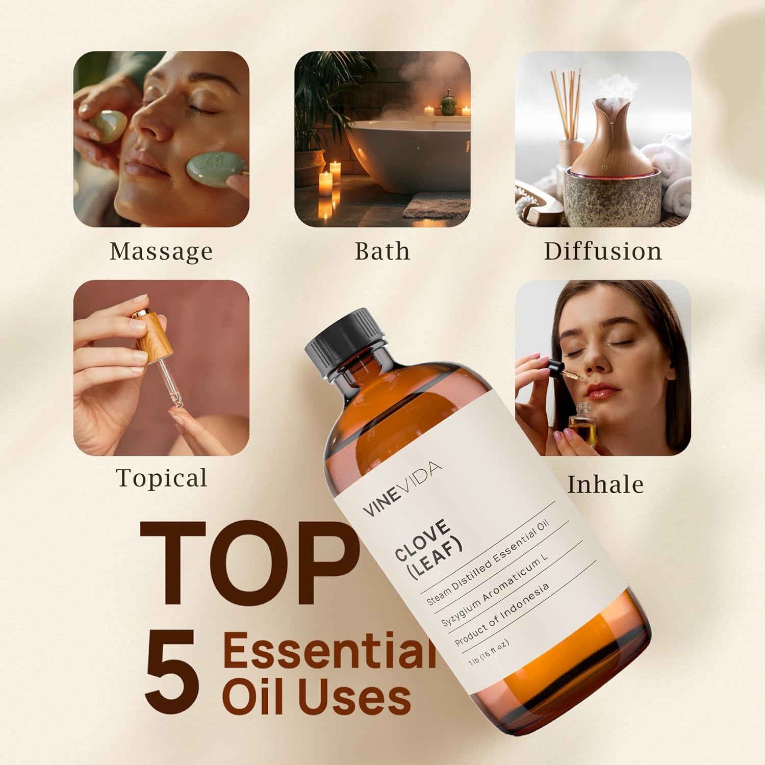 VINEVIDA Essential Oil 16 oz - Undiluted Clove Oil - Candle Oil Scent - DIY Candle Scents and Bulk Essential Oil for Soap Making, Safe for Skin