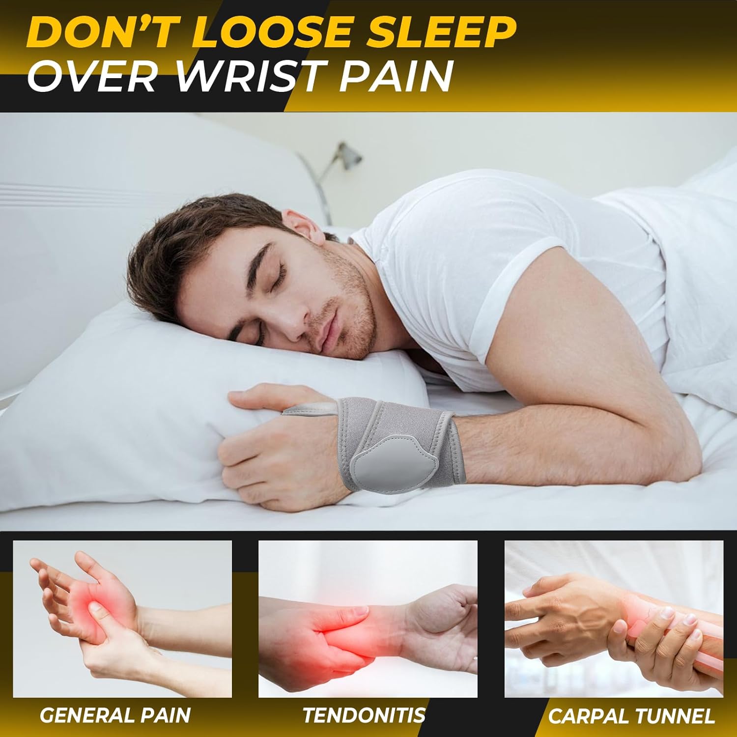 NeoTech Care Wrist Band - Elastic & Breathable Fabric - Adjustable Compression Strap - Men, Women, Right or Left - Support Wrap for Protection or Sports (Gray Color, Size S, 1 Unit)