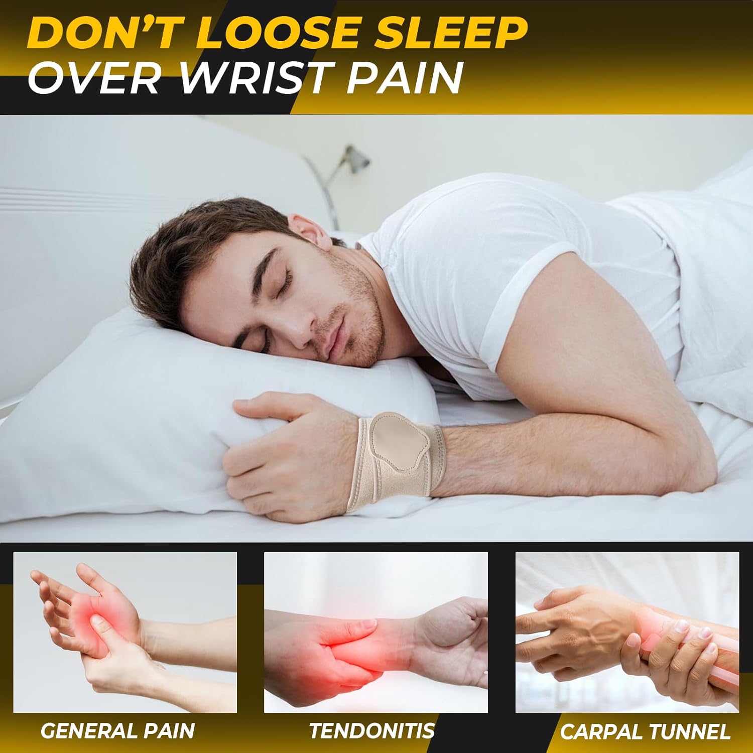 NeoTech Care Wrist Band - Elastic & Breathable Fabric - Adjustable Compression Strap - Men, Women, Right or Left - Support Wrap for Protection or Sports (Beige Color, Size M, 1 Unit)
