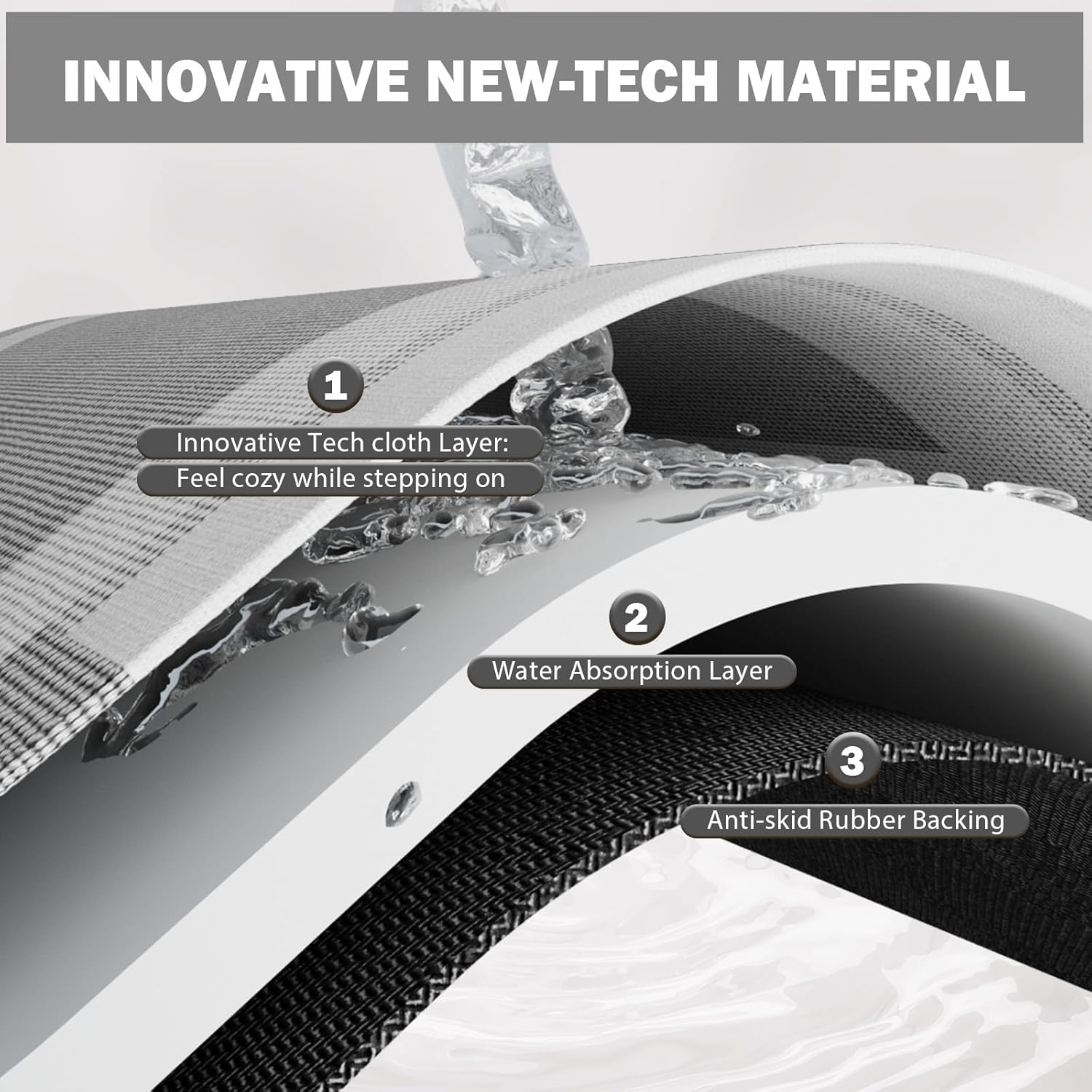 - Super Absorbent & Quick Dry: Super absorbent and quick drying diatomaceous earth bath mat's surface of technological fabric fabric and nano porous absorbent layer can instantly absorb dripping water, while the nano porous absorbent layer allows water to evaporate quickly and fast drying in the natural air, without leaving obvious watermarks or stains, the watermarks will be magically disappeared in a few minutes.