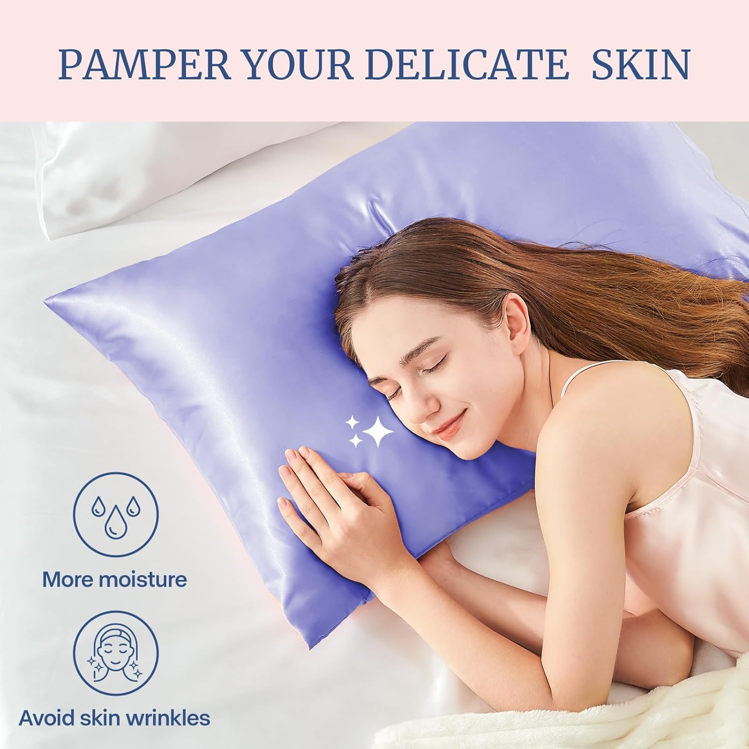 BEDELITE Satin Pillowcase for Hair and Skin, Super Soft Similar to Silk Pillow Cases 4 Pack with Envelope Closure, Cooling Pillowcases for Women Men (20"x30" Queen Size, Lilac)