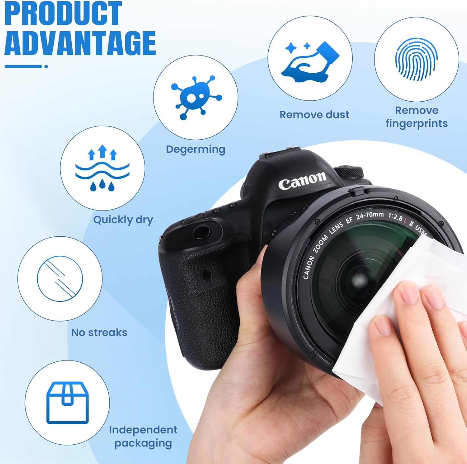- 【Gentle and Safe】The lens cleaner wipes are made of soft and lightweight material, gentle, effective and safe to use. Each wipe is pre-moistened ensure quick cleaning without leaving any scratch or streak. The eyeglass wipes is qucikly dry design. After unpacking the warp,please use the lens wipes in time inavoid moisture evaporation.