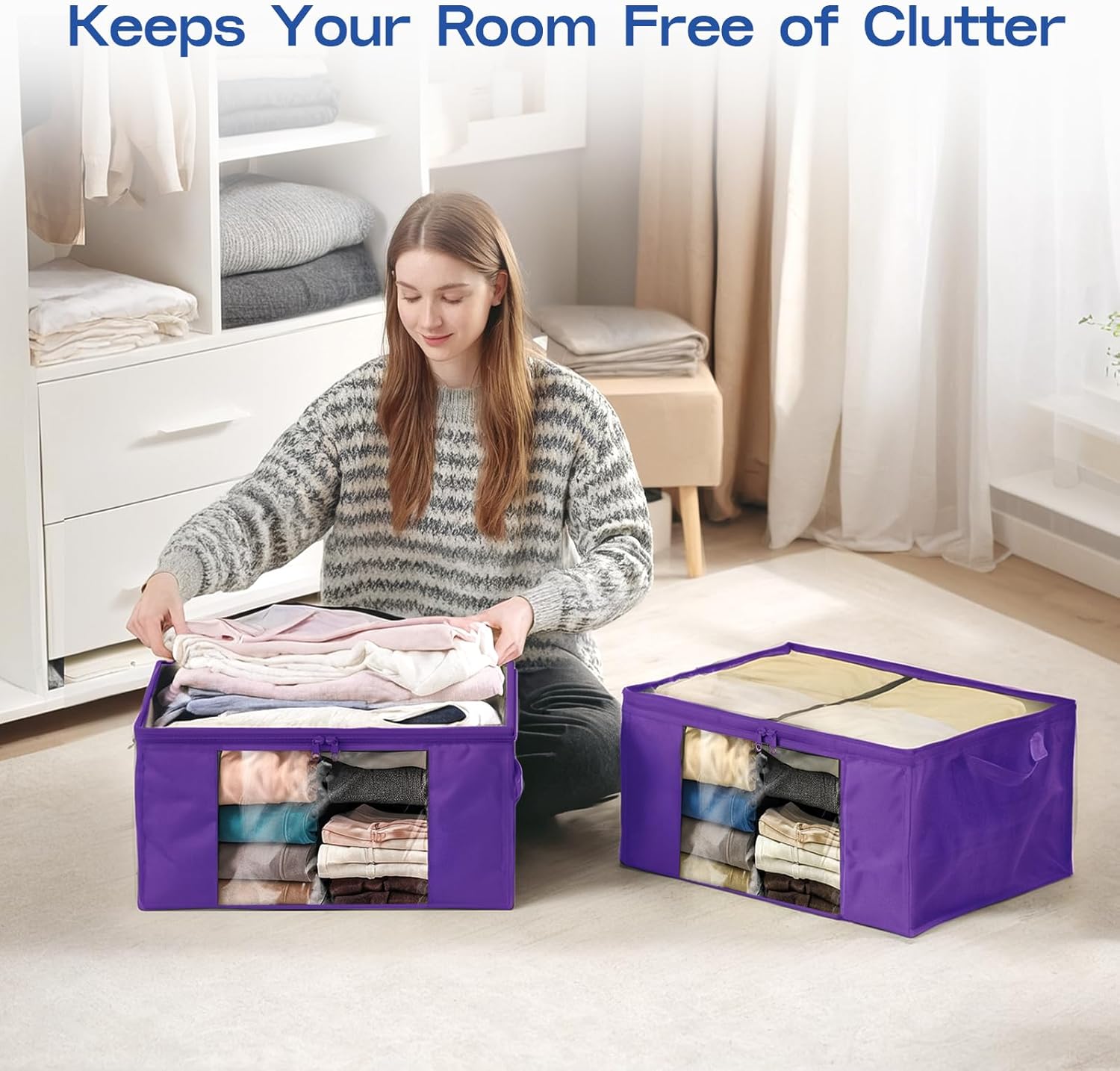 - 【Sturdy Zipper & Clear Window】Sturdy zipper ensures durability, the two-way zipper slides easily along the closure when in use, and the clear window on the front allows you to quickly find and distinguish your blankets, clothes, quilts, towels, pillows, shoes, books and toys.