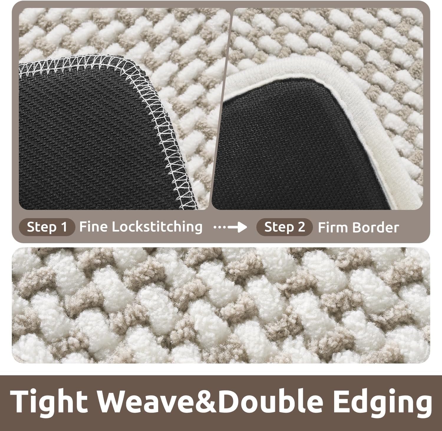 AMOAMI Chenille Bath Mat Super Absorbent Bathroom Mat Quick Dry Bath Mats for Bathroom Rubber Backed Bathroom Rugs Non Slip Washable Fit Under Door, Front of Bathtub, Sink, Beige&White 20"x32"
