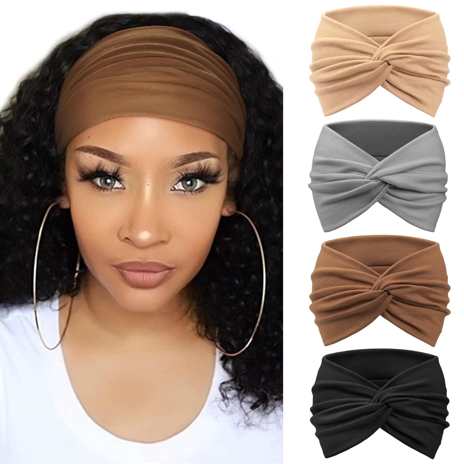 Extra Wide Headbands for Women Large Turban Headband Non Slip Boho Elastic Hairband Hair Twisted Knot Head Bands Accessories