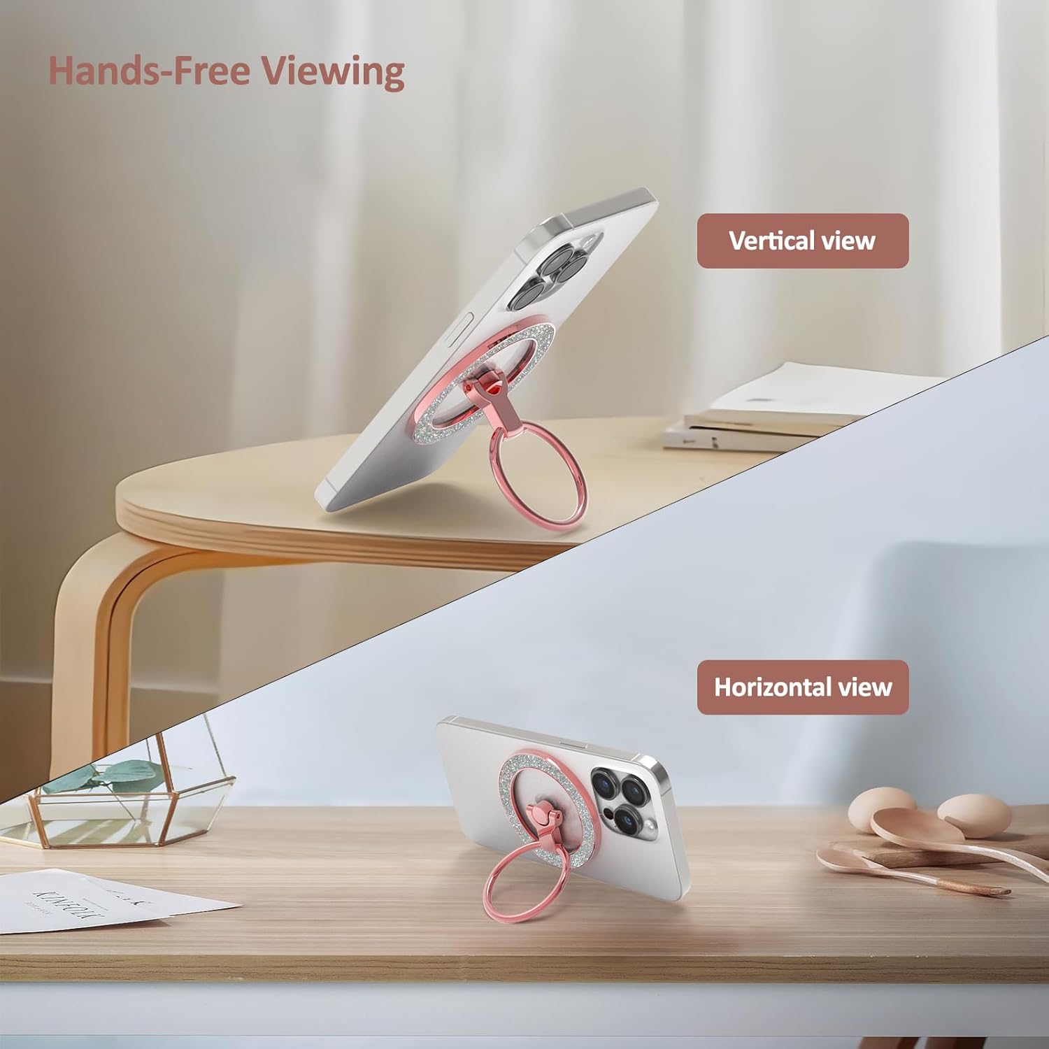 for MagSafe Phone Grip Stand, Magnetic Phone Ring Holder for MagSafe, Magnetic Ring Holder for iPhone. (Glitter Rose Gold)