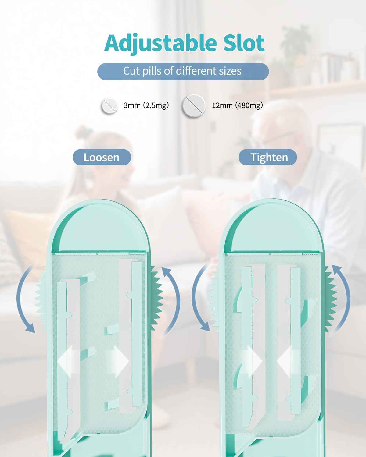- 【Easy to Use】: With adjustable bars and anti-slip silicone strips, this pill cutter securely holds pills in place and allows you to cut multiple pills of the same size at once