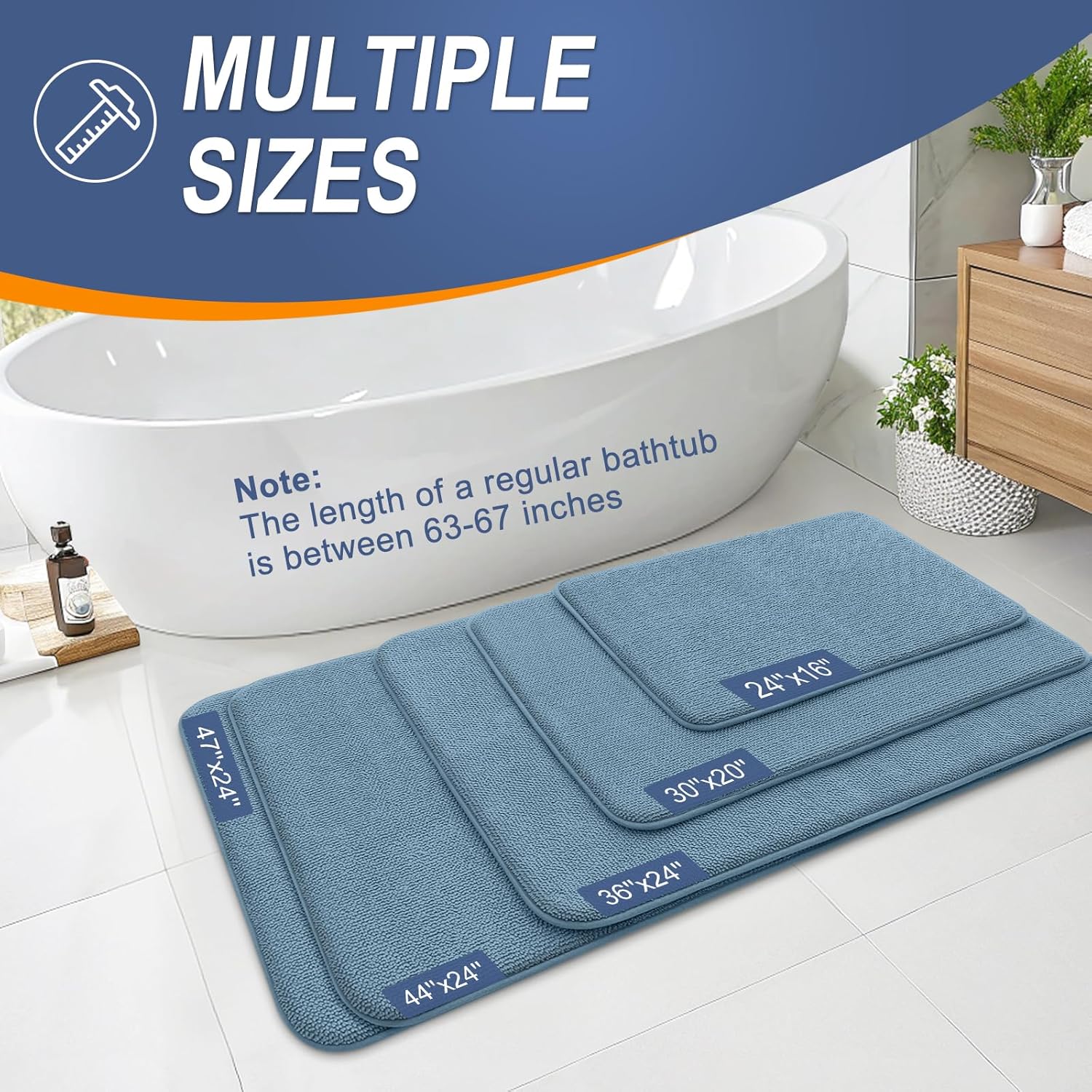 OLANLY Thick Memory Foam Bath Mat Rug 59x20, Extra Soft Absorbent Bathroom Rug, Quick Dry Bath Mats, Non-Slip, Machine Washable Carpet for Bathroom, Tub and Shower, Home Decor Accessories, Airy Blue