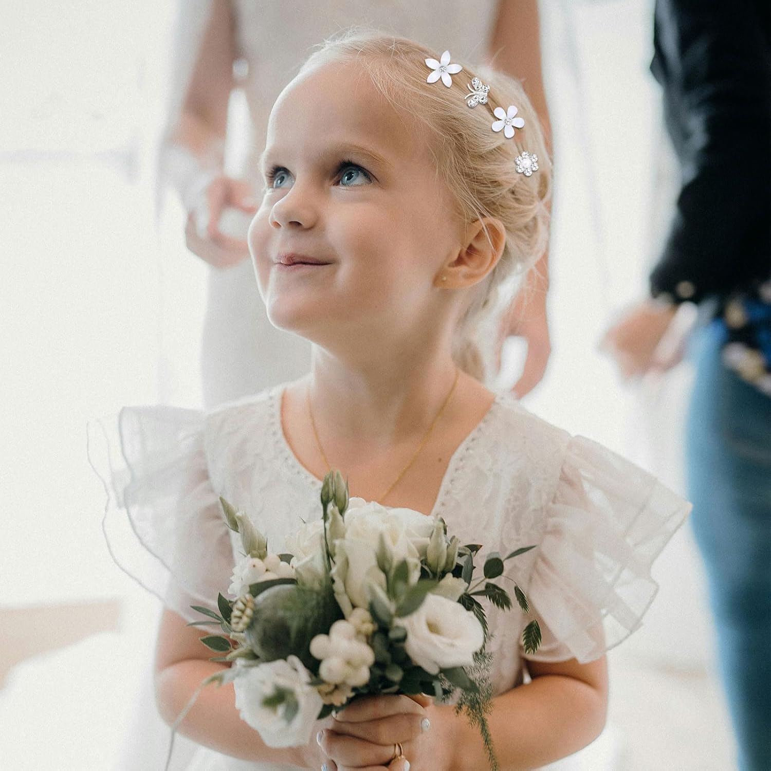 YISSION 20 Pcs Mini Flower Hair Clips Rhinestone Butterfly Hair Pins Small Decorative Hair Clips Wedding Hair Barrettes White Hair Clips Bridal Flower Girl Hair Accessories for Girls Women