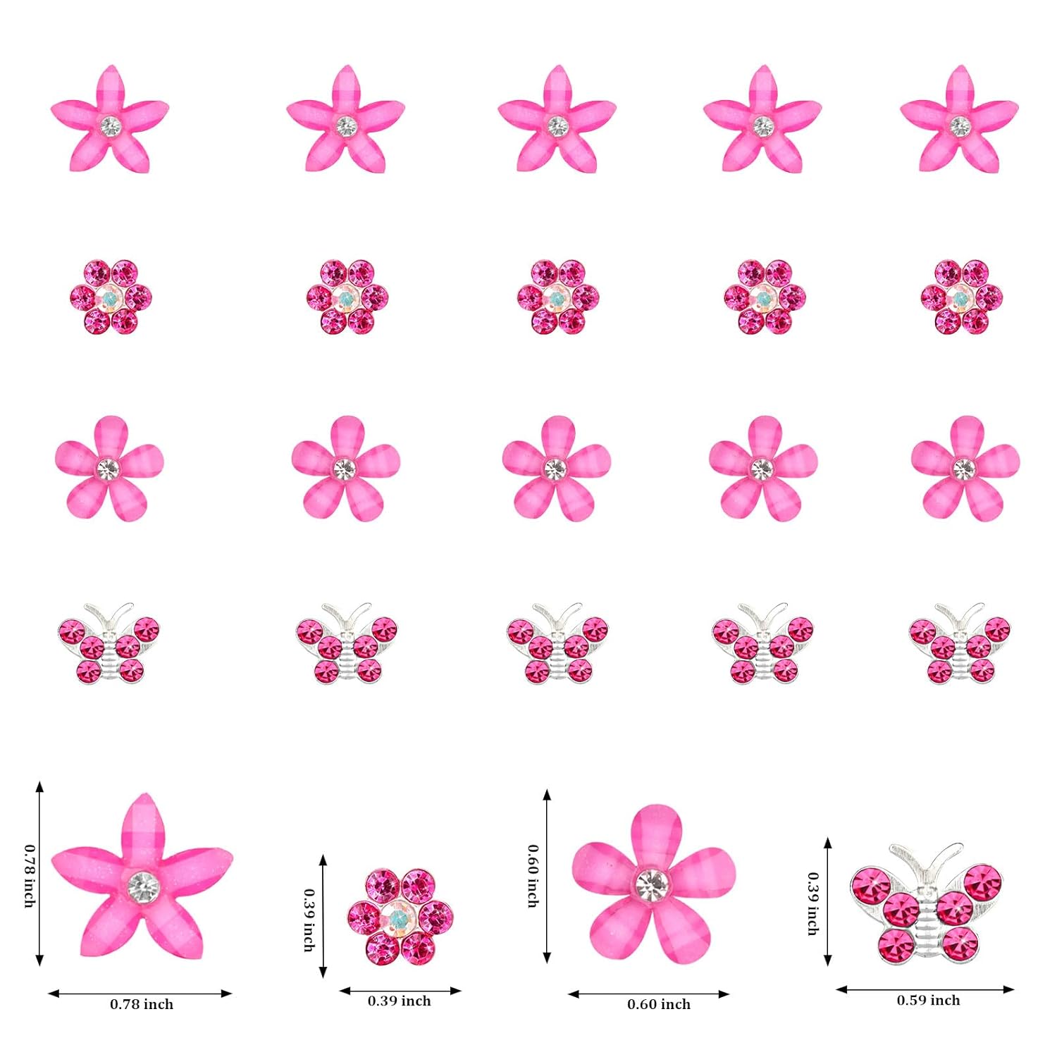 YISSION 20 Pcs Mini Flower & Butterfly Hair Clips - Hot Pink Rhinestone Hair Pins - Wedding & Bridal Hair Accessories for Women & Girls