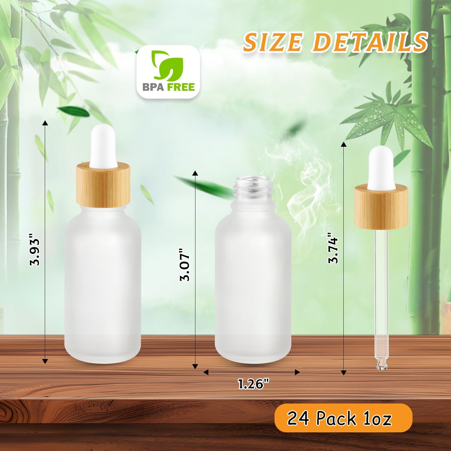 - Eye Droppers Set: 24 pack 1oz (30ml) white frosted glass eye dropper bottles.each empty glass bottle comes with a glass eye dropper and a natural bamboo lid;extra packaging included 4 pipettes, 4 funnels, and 24 blank stickers for easily to use;