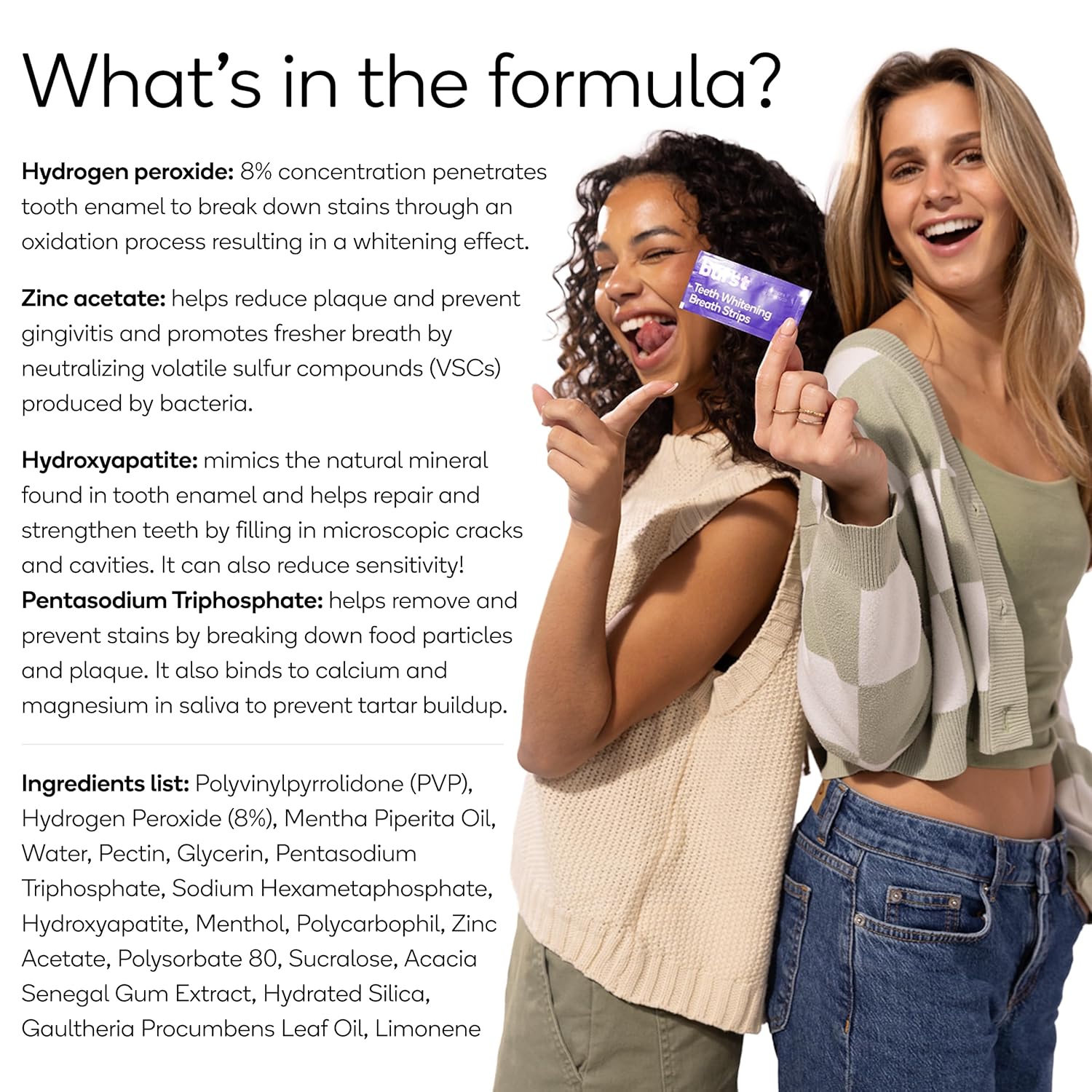 - π₯ππ©π’ππ¨π§ππ’π‘ππ₯π¬, ππ¨ππ-π£π¨π₯π£π’π¦π π¦π’ππ¨π§ππ’π‘: BURSTβs Teeth Whitening Breath Strips are a revolutionary, researched-backed two-in-one solution, combining instant breath freshness and visible teeth whitening in an easy-to-use, quick-dissolving strip.