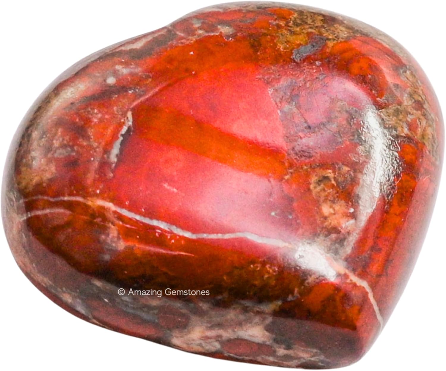 Amazing Gemstone Brecciated Jasper Crystal Heart Palm Stone - Pocket Massage Worry Stone for Natural Body Chakra Balancing, Reiki Healing and Crystal Grid