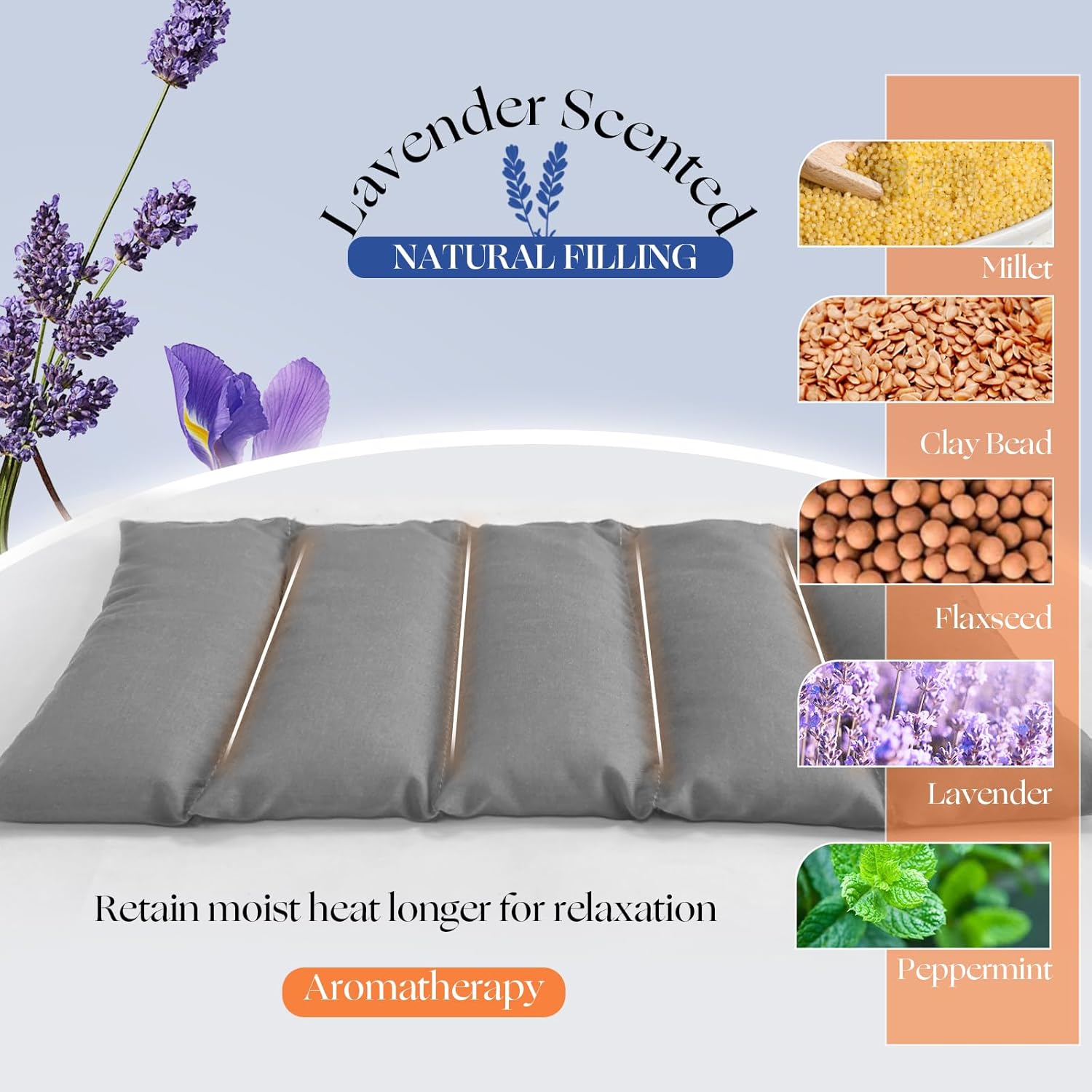 Microwavable Heating Pad with Washable Cover 13x7 Inch Flaxseed Microwave Hot Pack, Lavender Scent, Moist Warm Compress for Relaxation, Non-Electric & Portable
