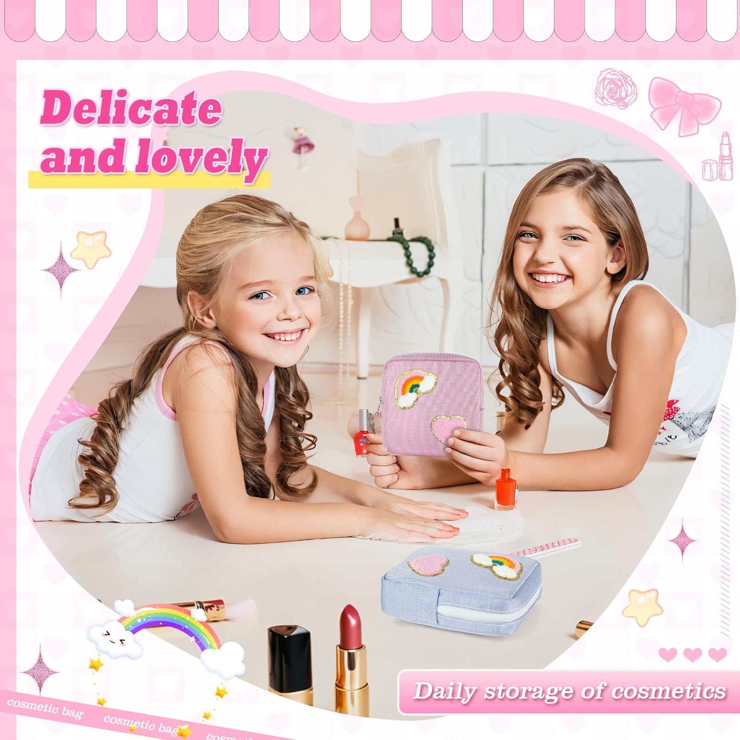 • 【Multifunctional Bag】The menstrual pad pouch is not only for storing sanitary napkins and disposable pads, it is also perfect for daily use or travel essentials, storing lipstick, first aid kits, band-aids, lip balms, cosmetics, mini mirrors, jewelry, keys, cash, credit cards, etc.