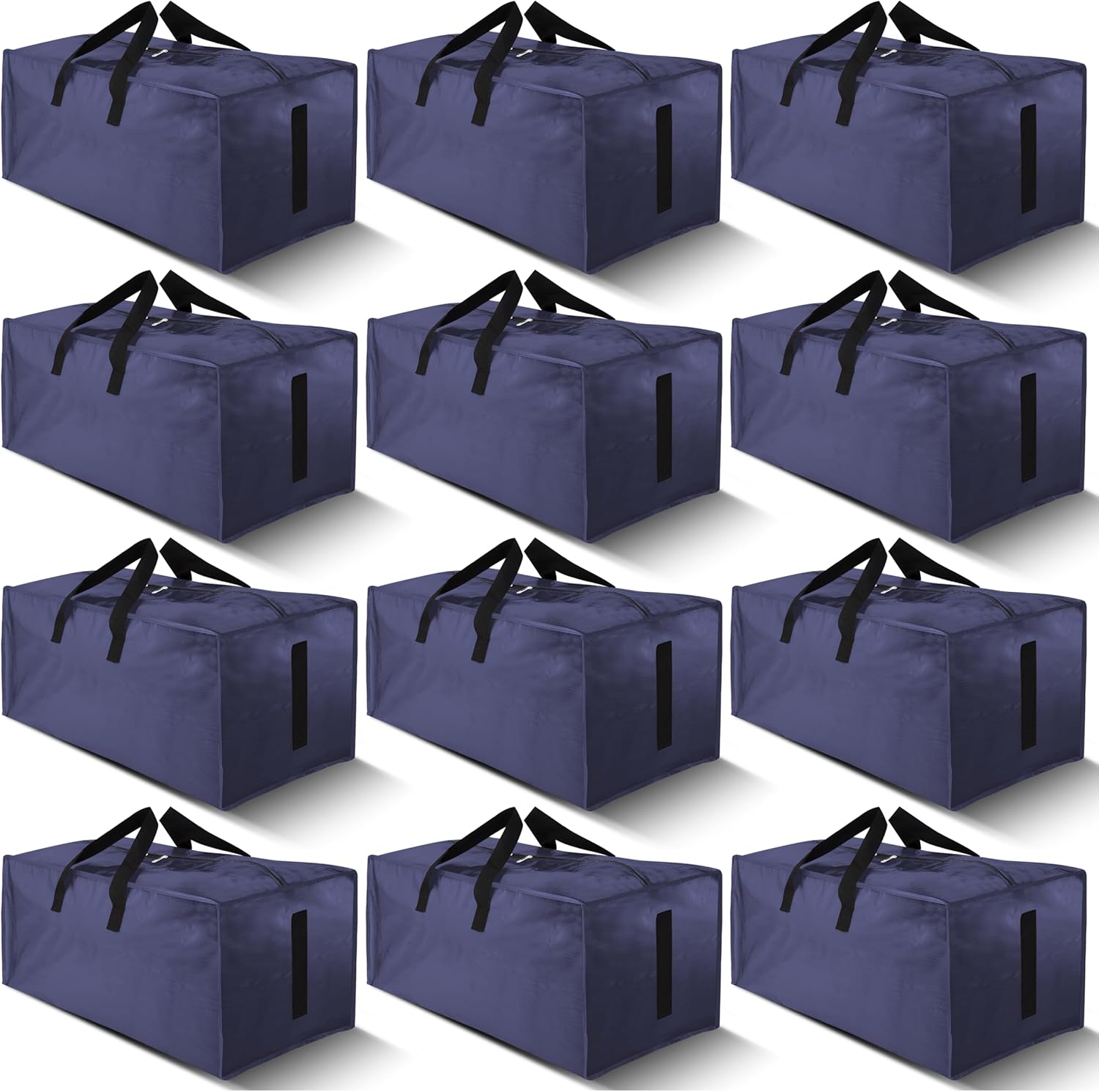 12 Pack Large Strong Moving Bags with Zippers & Carrying Handles - Water-Resistant - Heavy Duty Storage Tote for Space Saving, Fold Flat, Alternative to Moving Box (Blue)