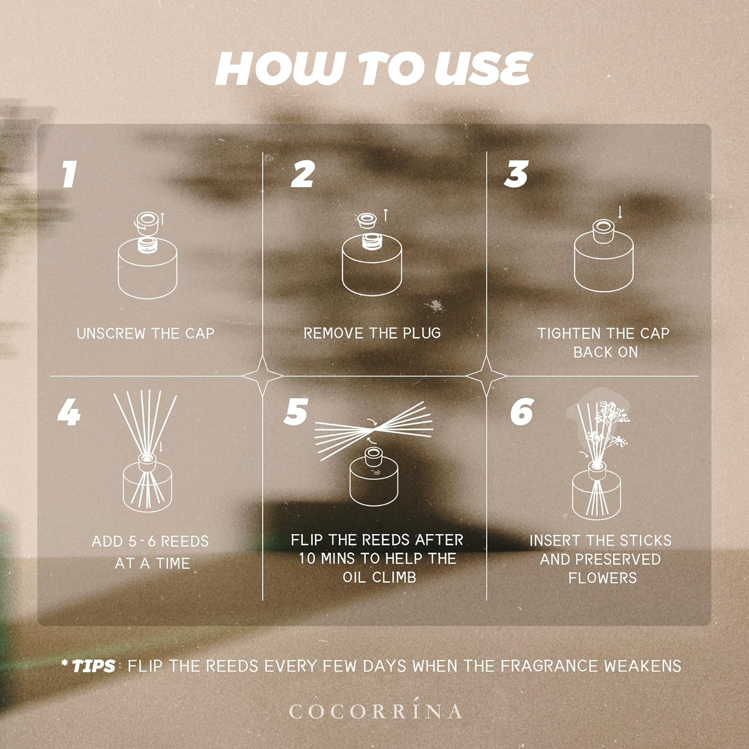 - Long-Lasting Fragrance: Experience up to 90 days of continuous scent. As the reeds soak in the fragrance, they gently disperse it into the air, filling the room with a subtle aroma for weeks.