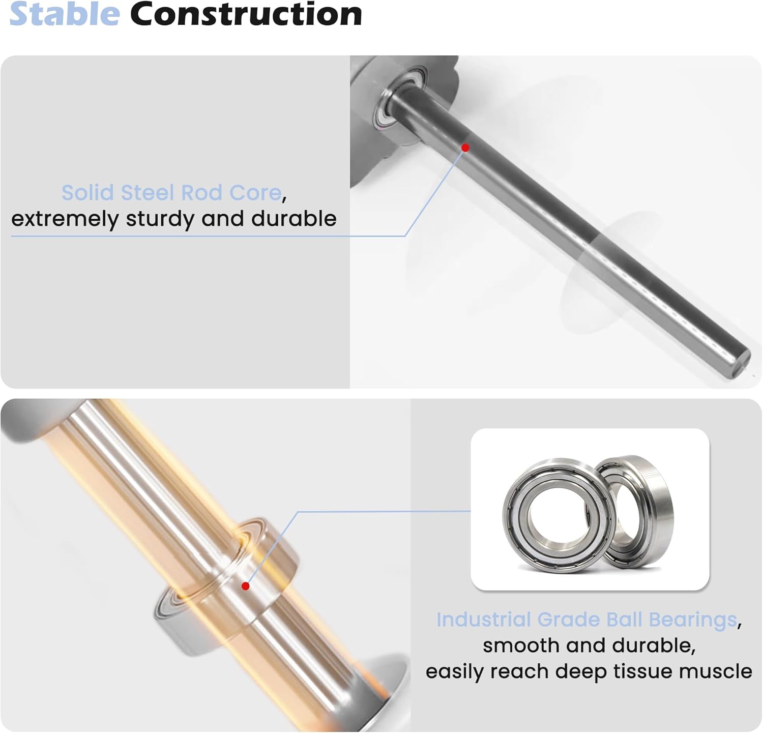 - Premium Material: KITWILD muscle roller is made of high-quality natural rubber, providing the perfect balance of flexibility and firmness. Industrial-grade ball bearings are smooth and durable and easily reach deep tissue muscle. Solid steel rod core, extremely sturdy and durable