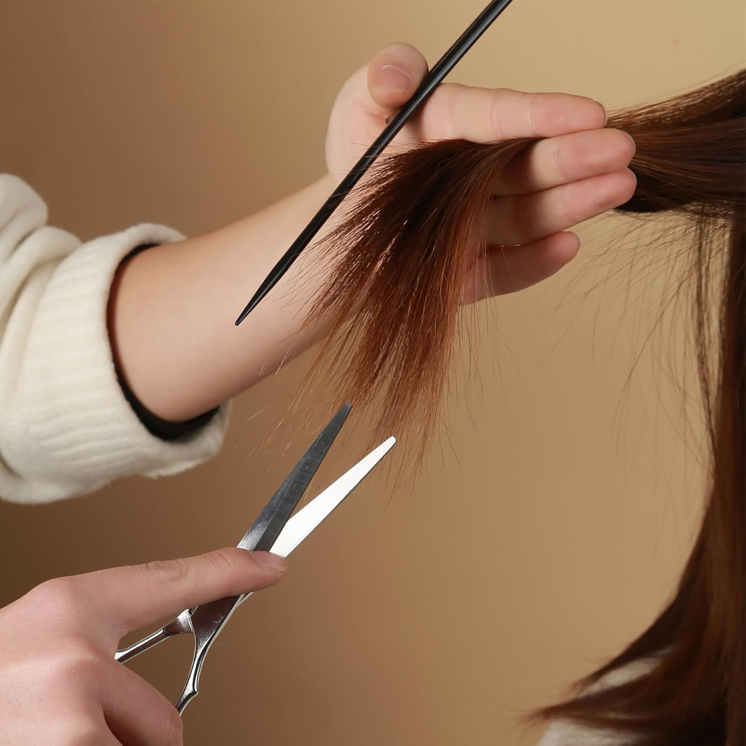 - 2 Pairs of Barber Scissors: Shears for hair cutting suitable for adults, men, women, children hair trimming. Hair cutting shears are a must for hair trimming. One with a straight blade and the other with a textured blade. You can give yourself a professional trim at home with these trimmers and scissors. Save money on going to the salon
