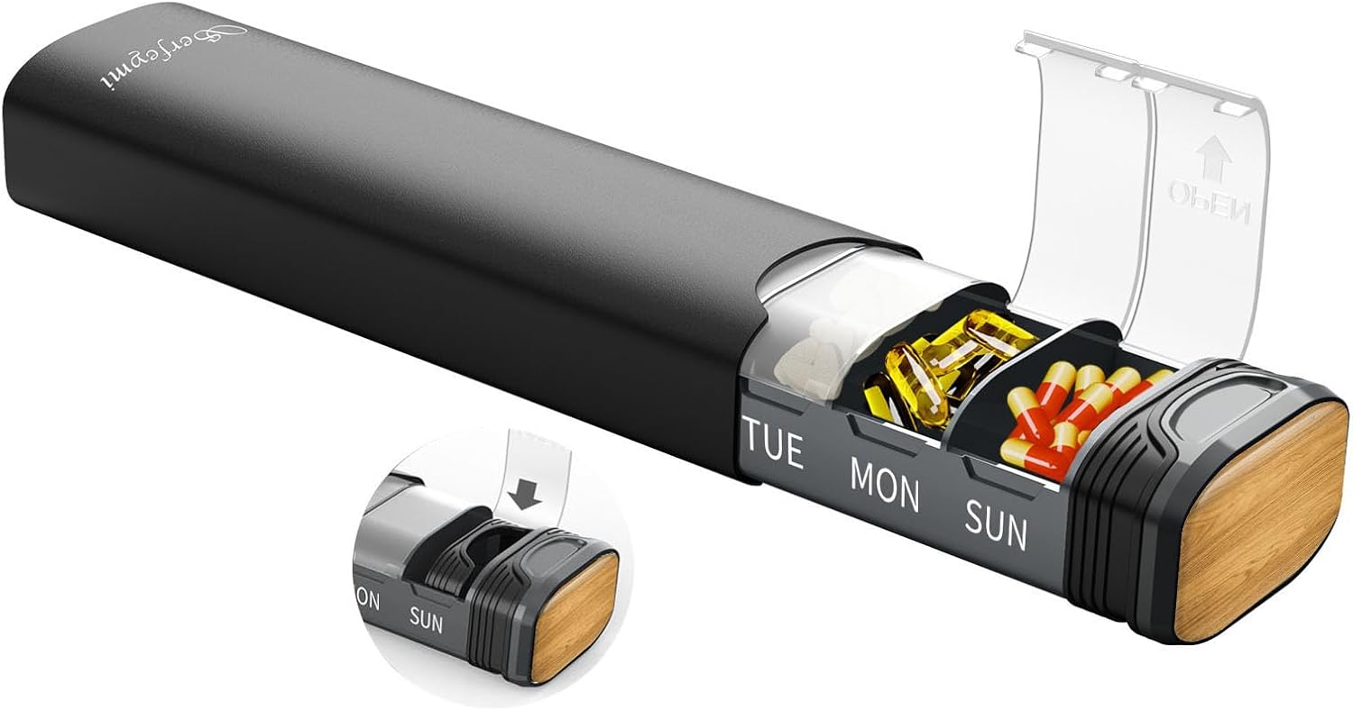 - PERFECT GIFT- Great for people with arthritis or someone have trouble in pulling the top of conventional pill holders. The day markers are etched on both sides of the pill tray. No need to rotate the pill box to see the day if you are the left-handed. For people who has to take pills every day, it is better to use something more attractive