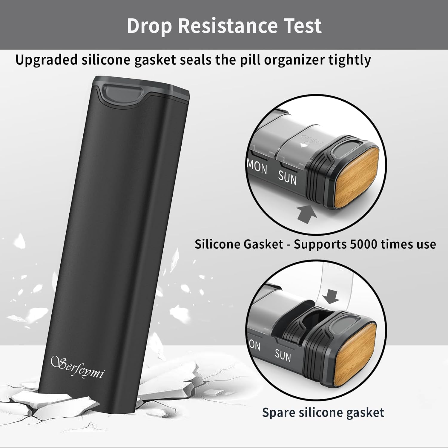 - NO MORE POPPING OPEN BY ACCIDENTALLY - Stop using tape or rubber band to seal trational pill boxes. This product is a slide in/out design pill organizer. It uses a silicone gasket to seal the pill case.Don't worry about if it will get loose after several months. The gasket supports 5000 times use and a spare gasket provided for free. No more risk of popping open. No mess of pills in your bags