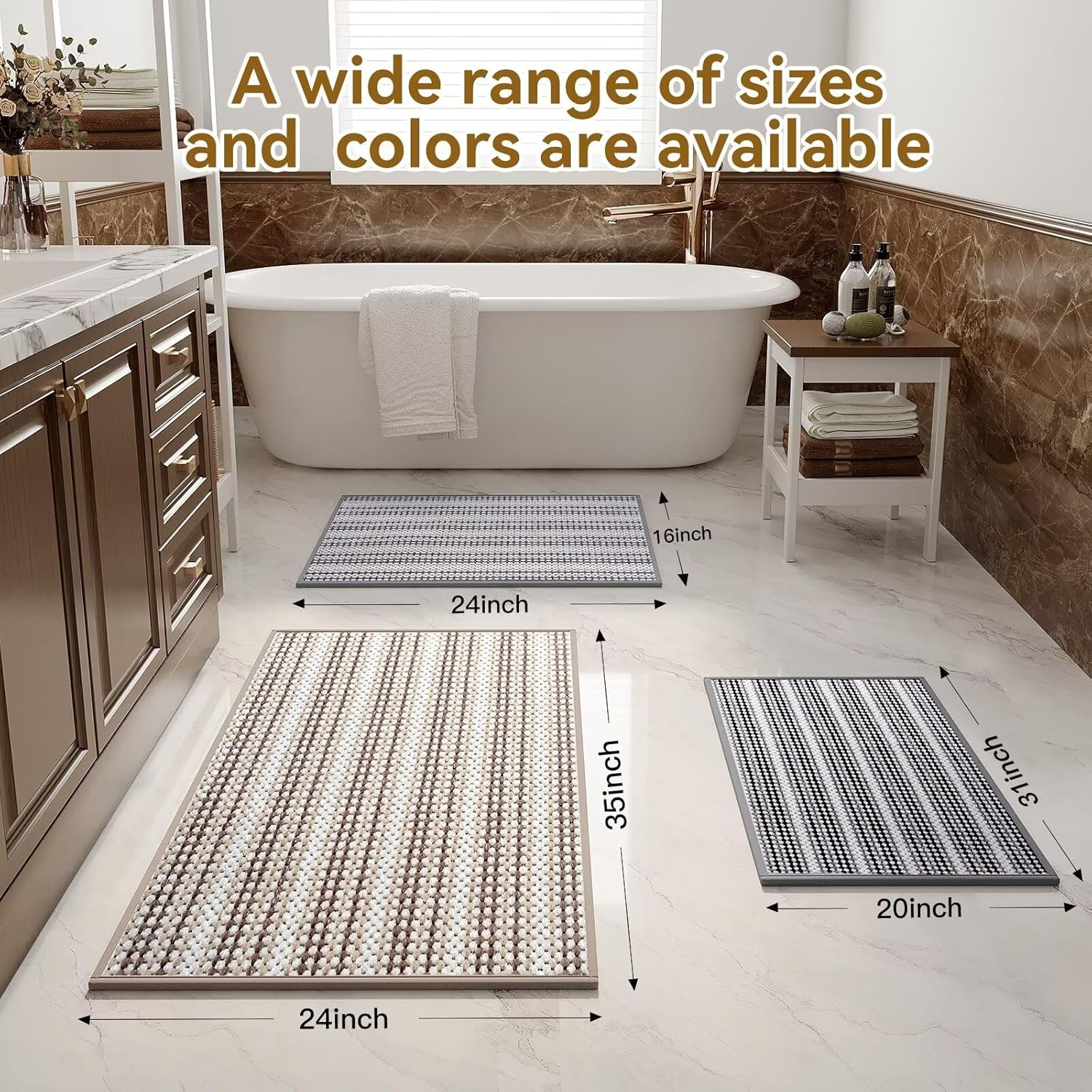 - WIDE USE - Our bath mat is not only suitable for use in the bathroom but can also be used in various other areas of your home. Whether it's in the kitchen, laundry room, entryway, or any other high-traffic area,Its durable construction and non-slip rubber backing make it perfect for any space where you want to enhance safety and comfort.