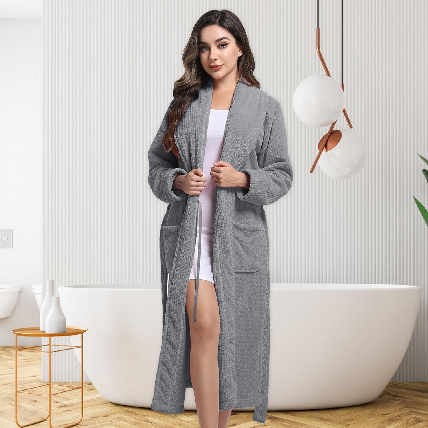 • LONG LASTING: This womens robe is more than just comfortable—it's an investment in lasting luxury. Double-stitched for durability, it stays strong through countless washes, ensuring your comfort never diminishes. Plus, it's designed to resist shedding, guaranteeing a pampering experience that remains plush and intact