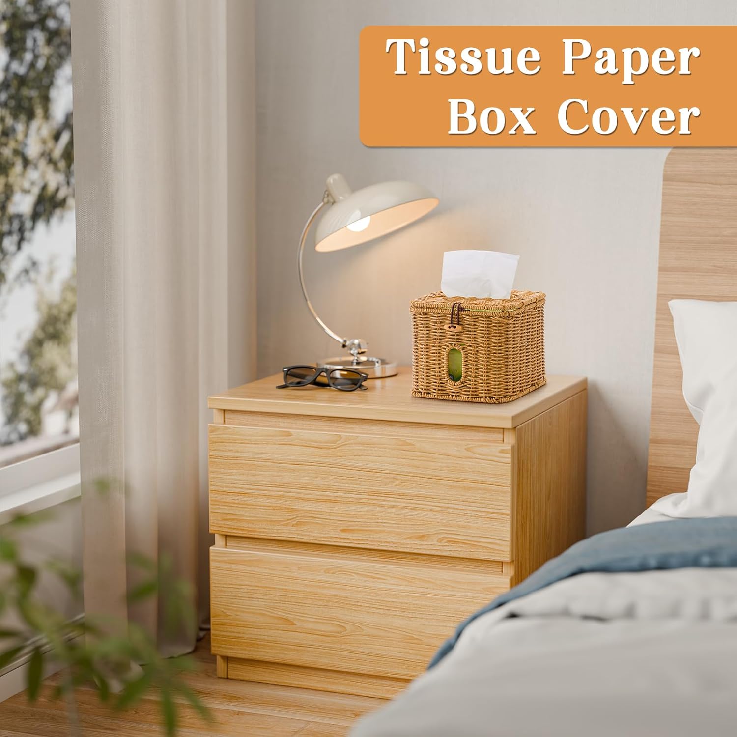 - 【Rustic Farmhouse Style】The disposable face towel holder is crafted from plastic rattan with a handwoven texture, this durable and stylish box brings a cozy countryside feel to your bathroom. It complements various home decor styles while offering practical functionality