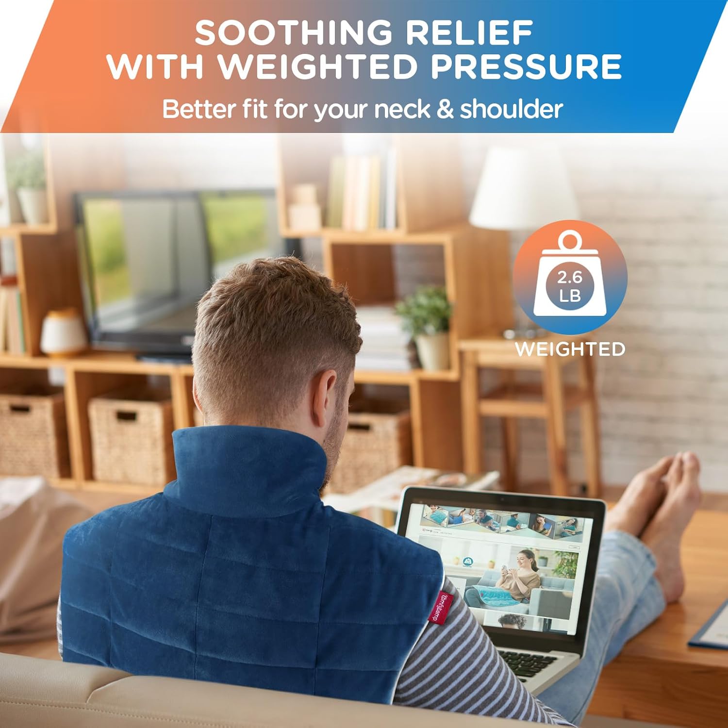 Comfytemp Heating Pad for Neck and Shoulders and Back, Weighted Electric Heat Pad for Pain Relief, 2.6lb Large Heated Wrap, 9 Heat Levels, 11 Auto-Off, Gifts for Women Men, Dark Blue