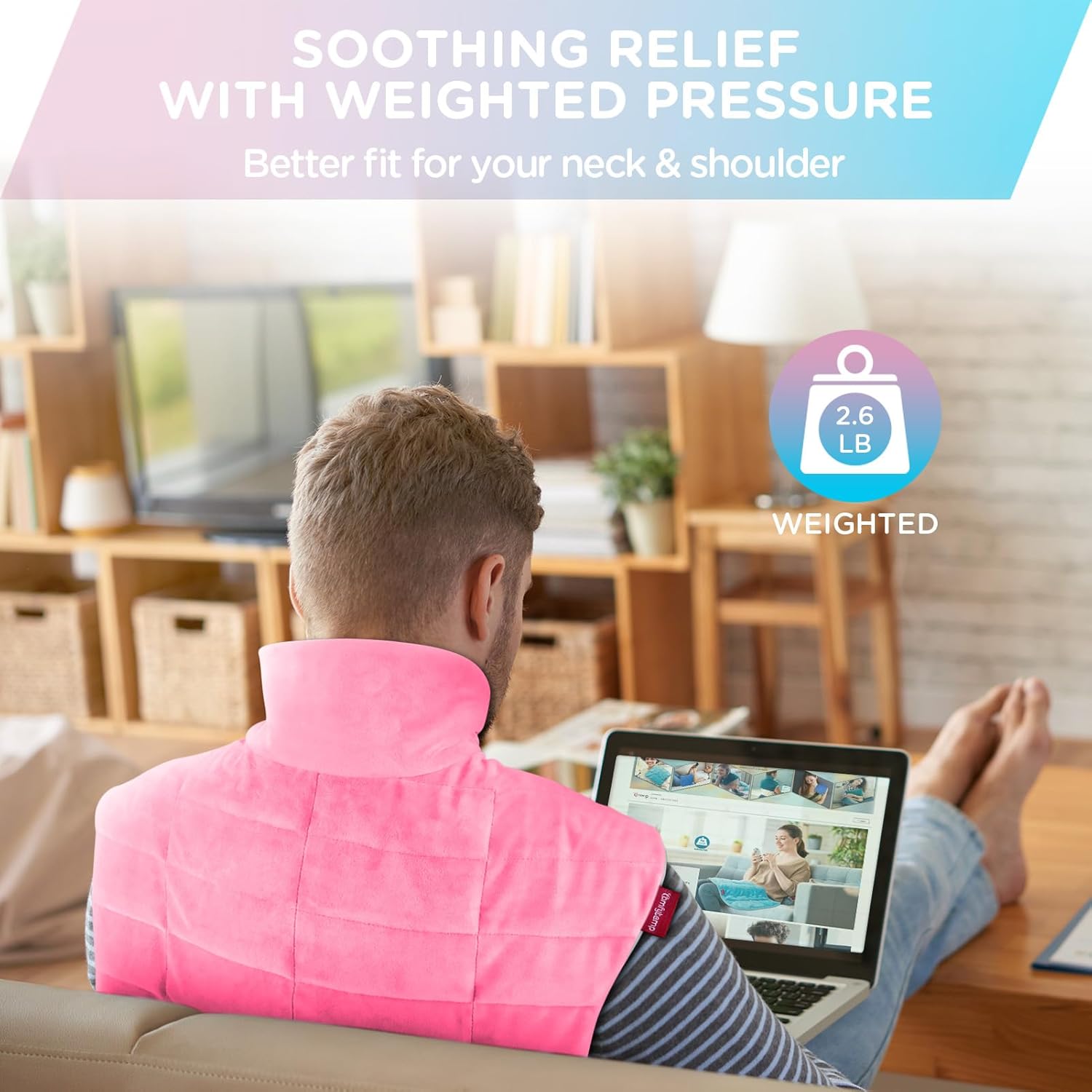 - 2.6lb Weighted Heating Pad: Filled evenly with micro-glass beads, our 19"x 23" large heating pad for neck and shoulders and back is designed for better fit around your neck and shoulders, providing a comforting sensation akin to being hugged. It effectively relieves neck, shoulder, and upper back pain, eases muscle tension and soreness. Additionally, it can be applied flexibly to the abdomen and waist to help relieve period cramps. An ideal gift for mom, wife, or girlfriend.