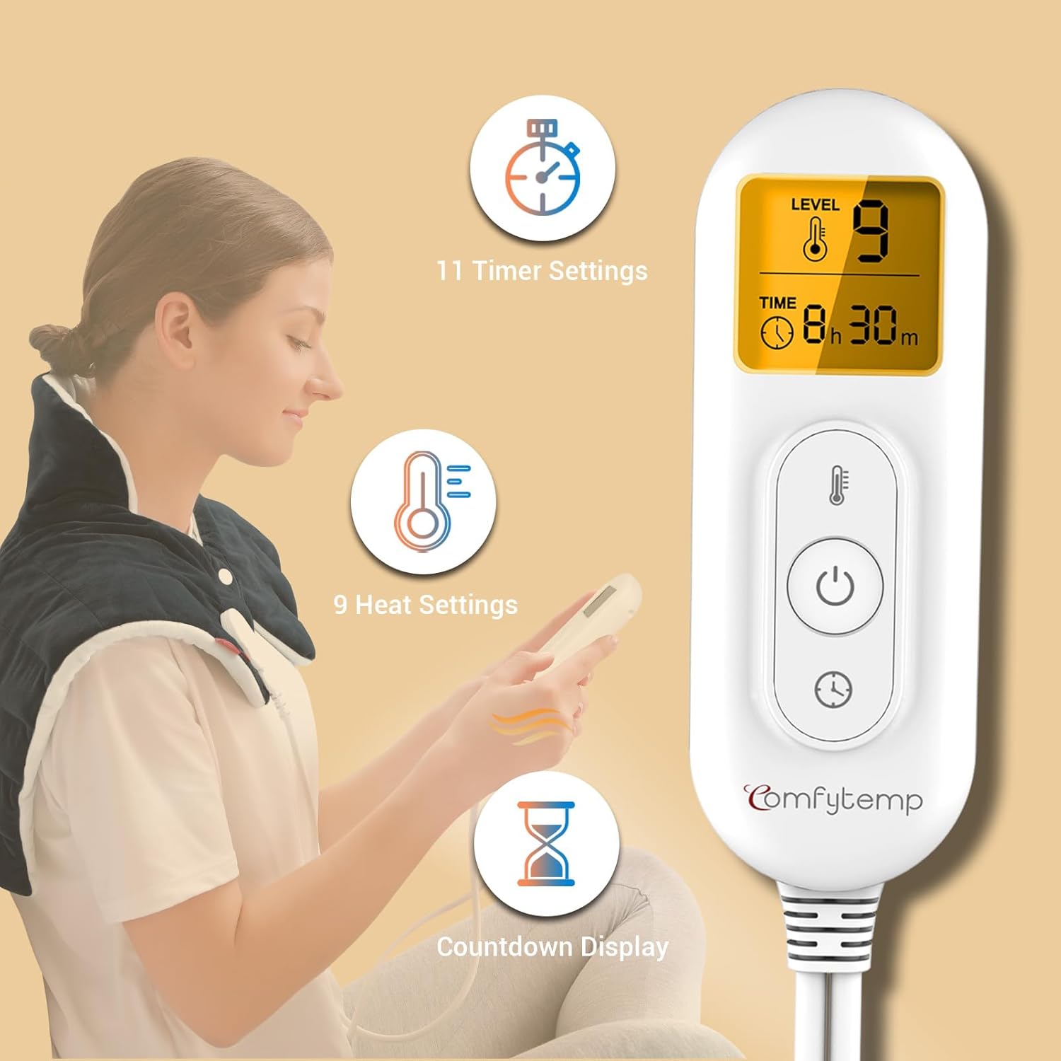 - 9 Heat Settings & 11 Auto-Off Timers: Offering 9 heat settings (temperature are 131 °F to 140 °F), which meet most pepole's hot compress need, and more safe. Furthermore, 11 auto-off timers (0.5H, 1H,1.5H, 2H, 3H, 4H, 5H, 6H, 7H, 8H, 9H), the neck heating pad allows you to customize the desired temperature and time for heat therapy. This helps conserve energy and prevents excessive heating. Heat pads make great anniversary, retirement, get well gifts for both women and men.