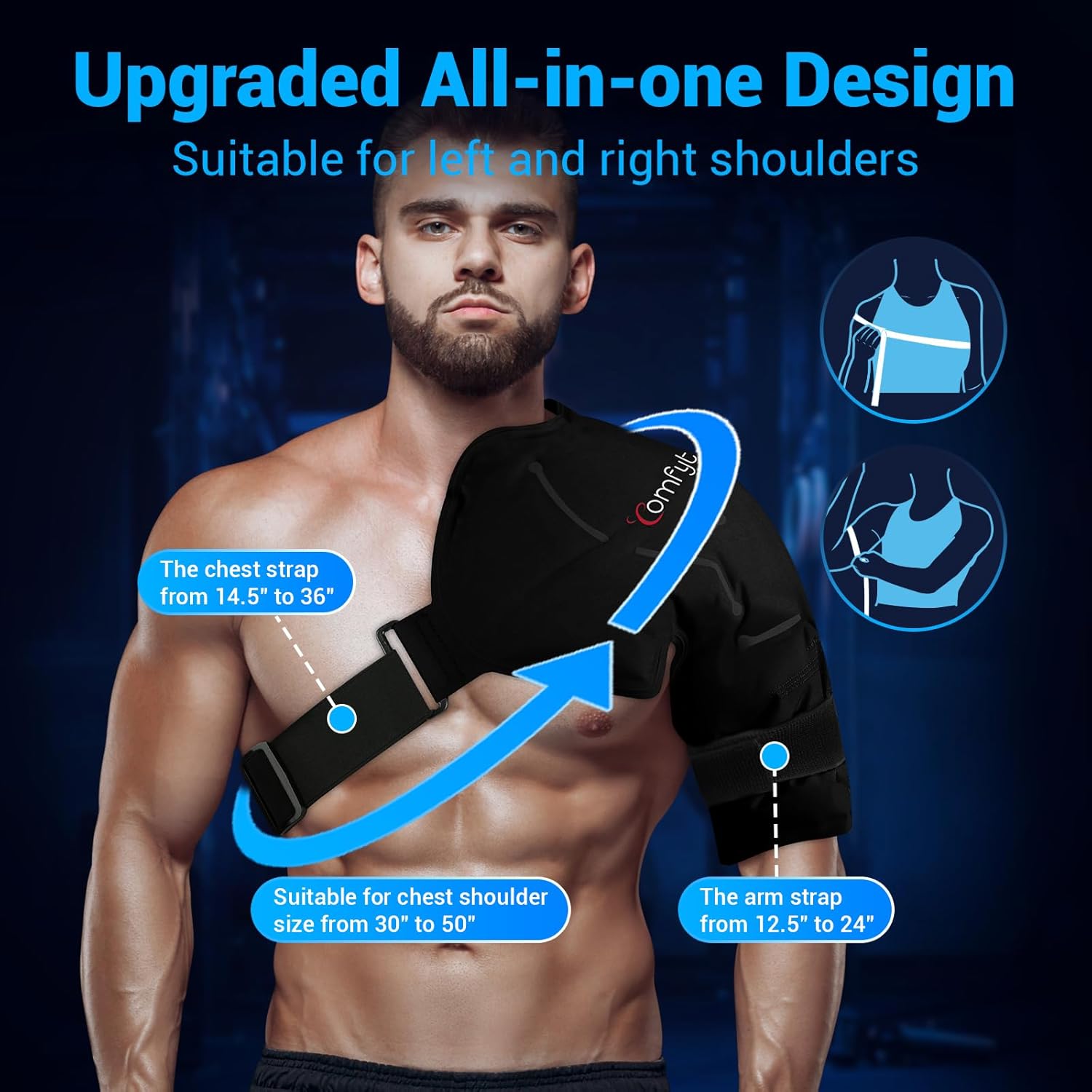 Comfytemp Shoulder Ice Pack Rotator Cuff Cold Therapy Wrap, Ice Packs for Injuries Reusable Gel, Instant Compression for Shoulder Pain Relief, Surgery Recovery Gifts (Large), Black