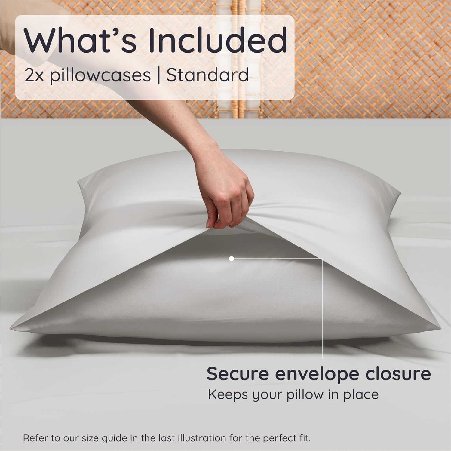 Bambaw 100% Viscose Derived from Bamboo Pillowcases Standard Size – Set of 2 Cooling Pillow Cases Standard Size, Super Soft Pillow Cases with Envelope Closure, Anti Acne Pillow Case (Moonlight Gray)