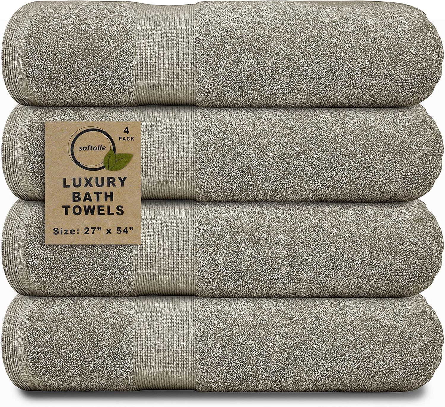 Softolle Luxury Bath Towels Set of 4 (27” x 54”) | Towels for Bathroom | Super Soft | Highly Absorbent Towels for Home, Spa, Gym (Taupe)