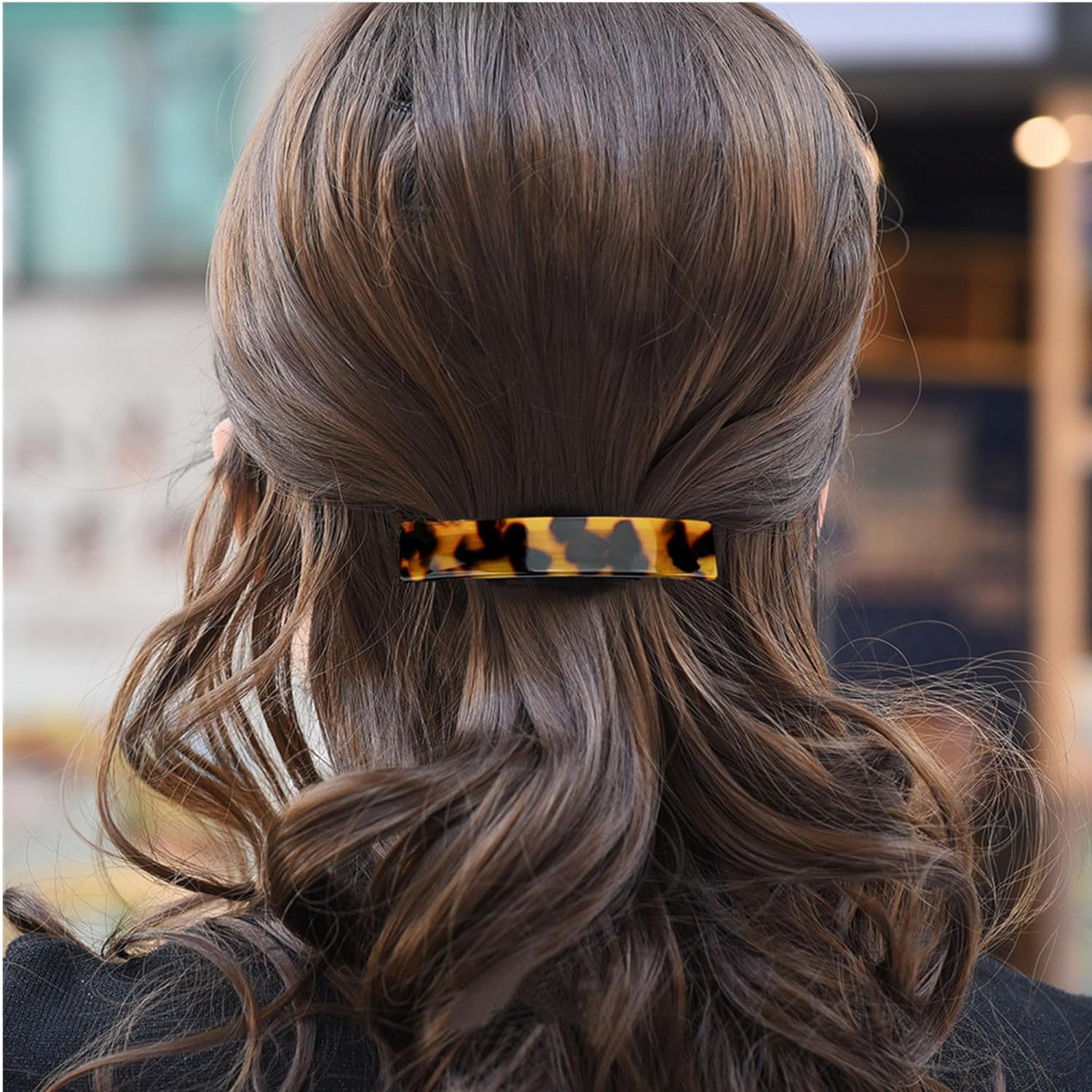 - Premium Quality Material: These hair barrettes are crafted from luxurious, high-grade cellulose acetate, offering an elegant and timeless design. The silver-plated metal automatic clasps ensure durability and comfort without pulling your hair. Perfect for everyday wear, these tortoise barrettes add a charming touch to any hairstyle.