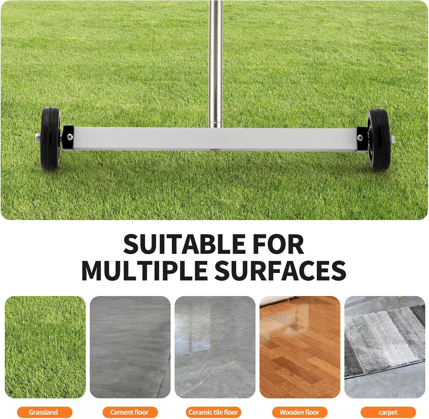 HARDK Magnet Pickup Sweeper Tools - 17 inch - Magnetic Pick Up Sweeper -10 Lbs - Yard Magnet with Telescoping Holder and Wheels to Pick Up Nails, Magnetic Sweeper for Construction,Lawn,Roofing