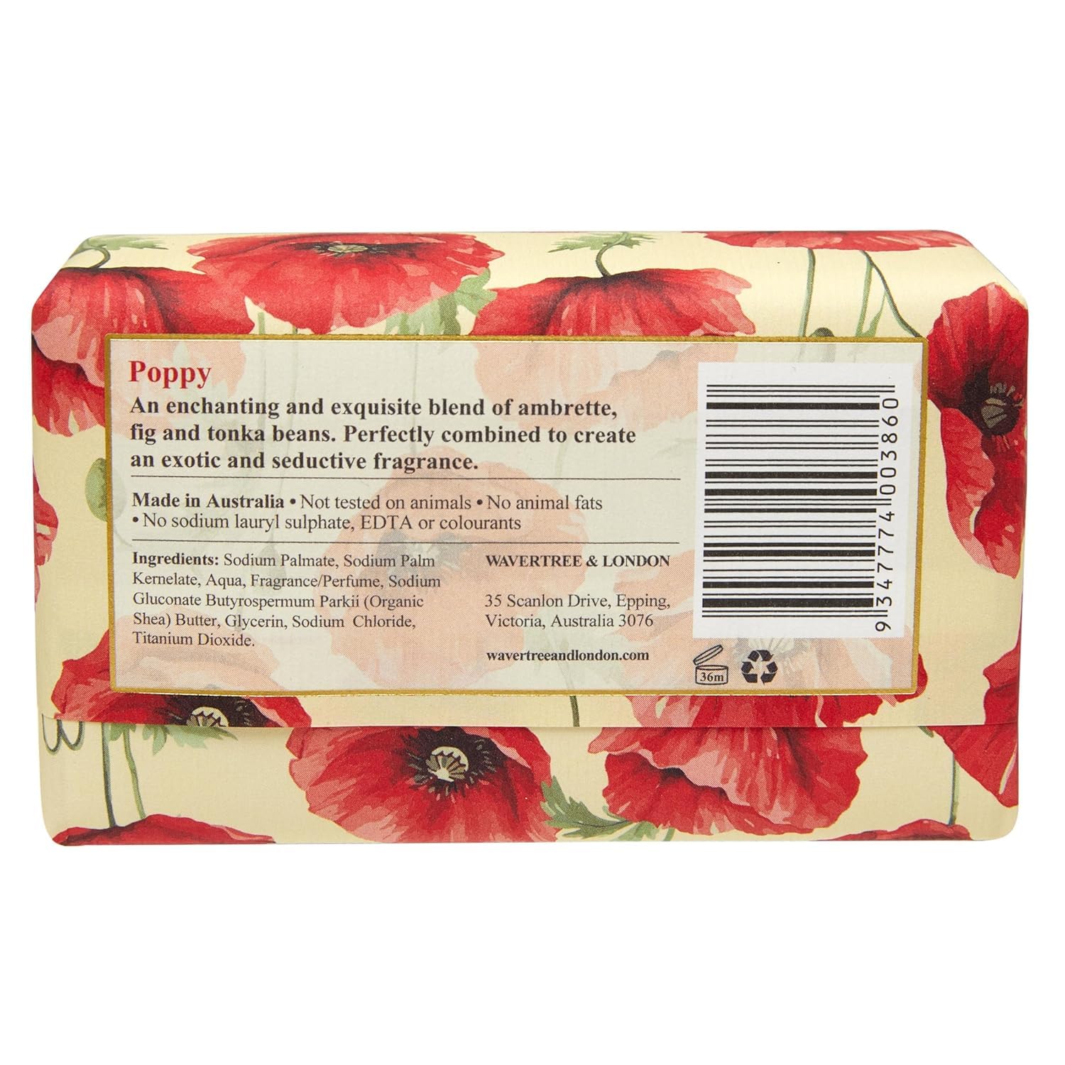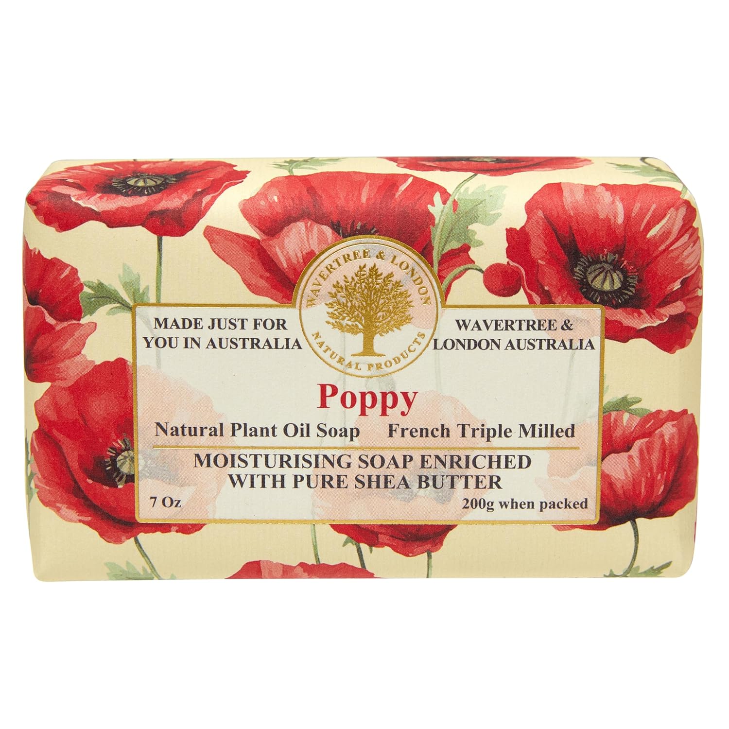 Wavertree & London Poppy Scented Natural Soap Bar, 7oz Moisturizing French Triple Milled Soap Bar for Women & Men