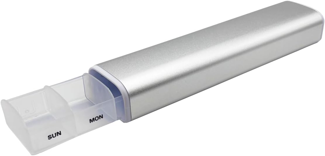 - DURABLE PLASTIC INTERIOR & ALUMINUM EXTERIOR: Features a sleek aluminum outer shell and BPA-free plastic interior for safe, long-lasting medication storage. Designed to combine durability and style in one compact case