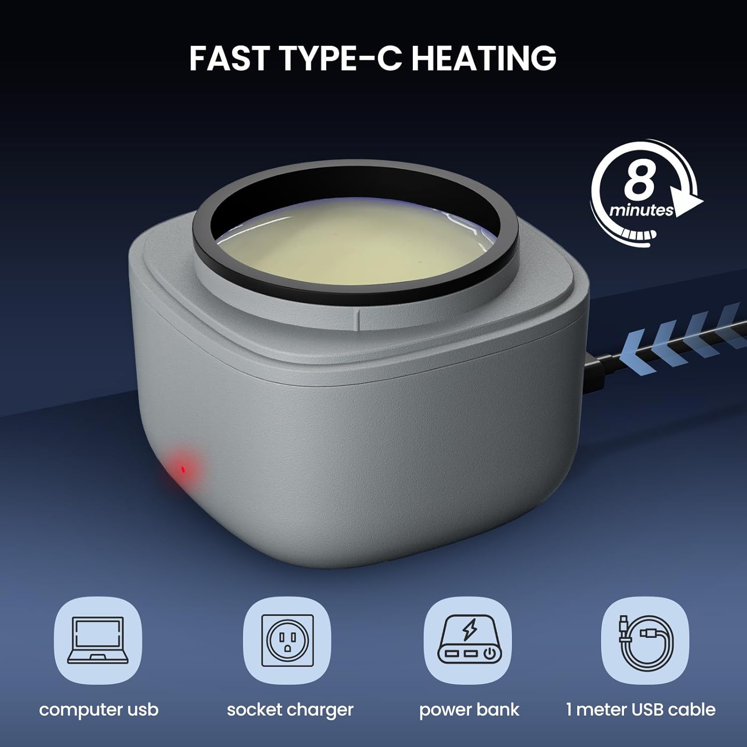 - Rapid Type-C Heating: Achieve full melt in just 8 minutes with 10g of crafting wax beans, thanks to the efficient Type-C USB system compatible with computers, power banks, and wall outlets