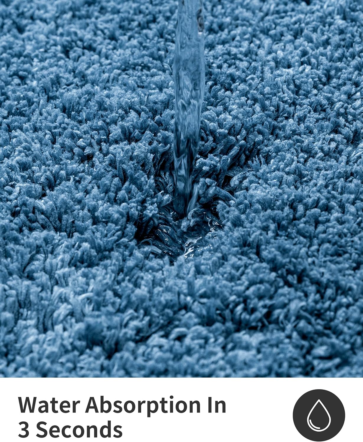 ILANGO Blue Bathroom Rugs 32" × 20" Non Slip & Super Absorbent Extra Thick Soft, Washable Bath Mat for Floor, Microfiber Plush Shaggy Bath Rug with Rubber for Bathtub Shower Room Sink