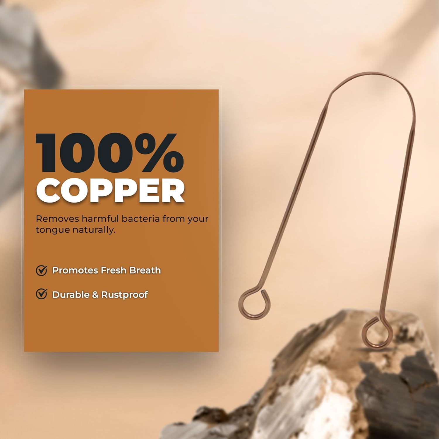 HOKIN Tongue Scraper for Adults with Travel Case (1Pcs Oral Care Pack) - 100% Copper U Shaped Tongue Cleaner, Tough Scraper for Men & Women Oral Hygiene