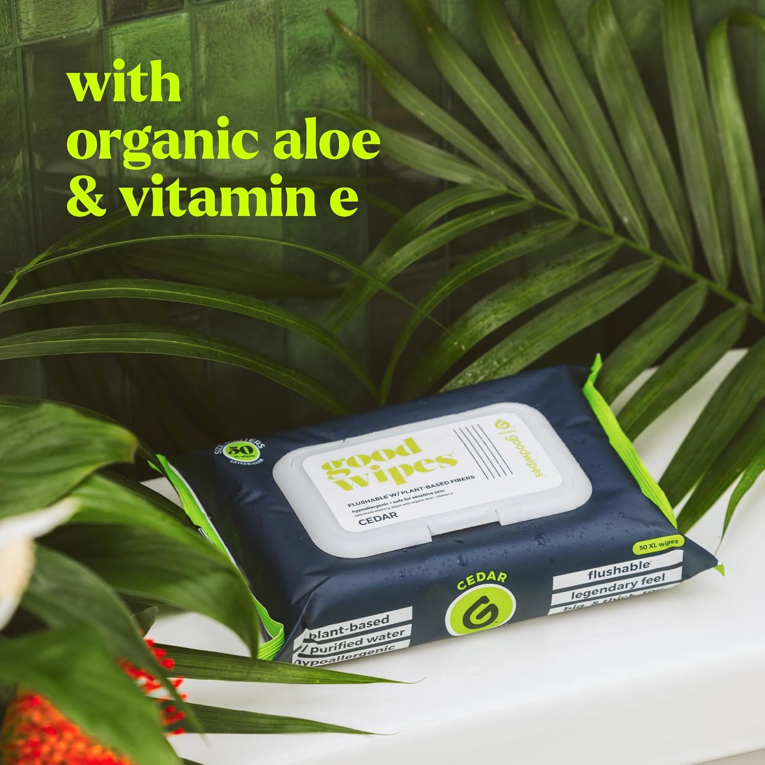 goodwipes Flushable Butt Wipes - Vitamin E & Aloe - Sewer & Septic Safe - Extra Large Adult Wet Wipes For Women & Men - Bathroom Essentials - Cedar, 318 Count (6 Packs + 1 Travel)
