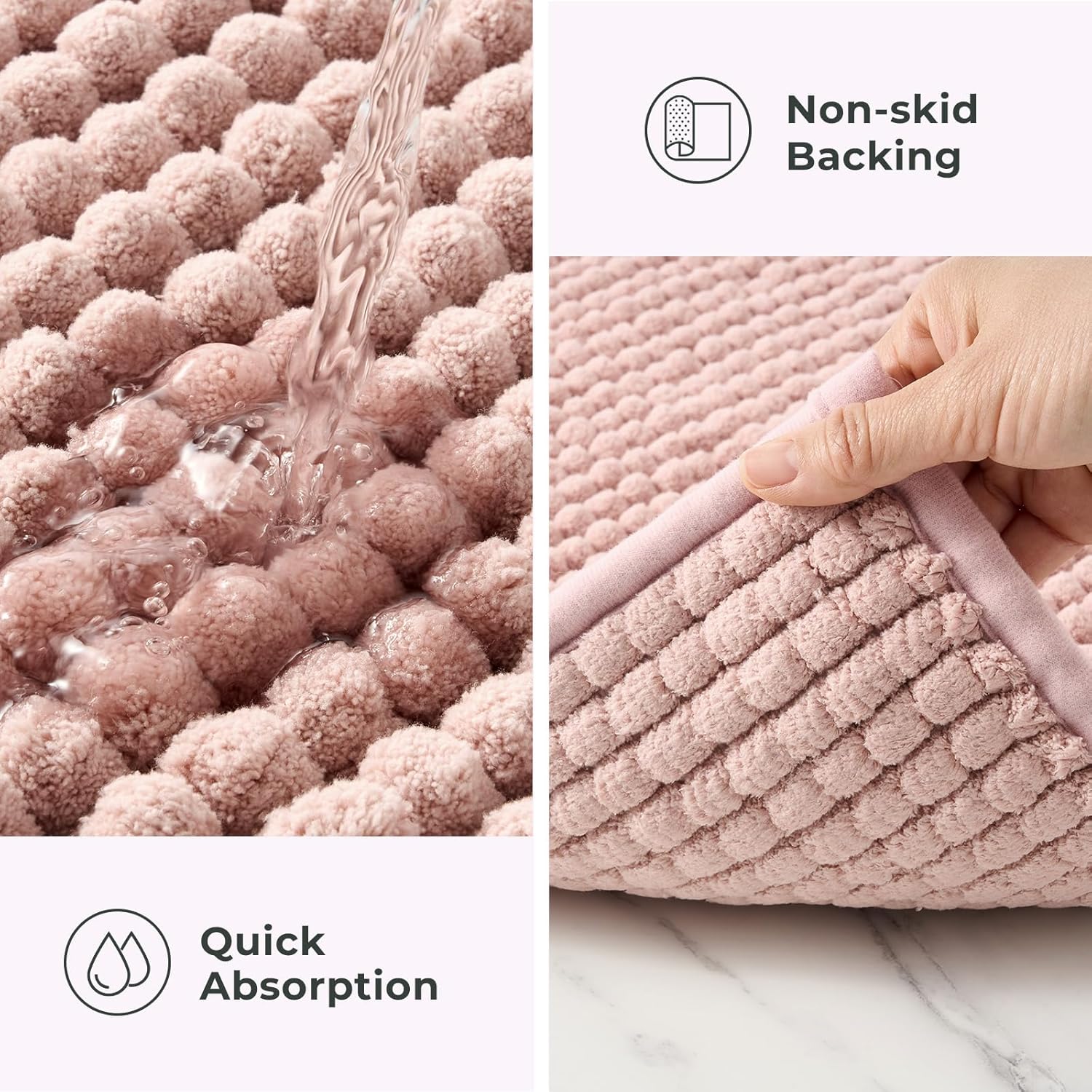 - Ultra Absorbent & Quick Dry - Experience exceptional water absorption with our premium bath rugs. The thick chenille yarn efficiently wicks away moisture, leaving your feet dry and comfortable in a matter of seconds. Enjoy the convenience of a fast-drying bath rug that enhances your daily routine.