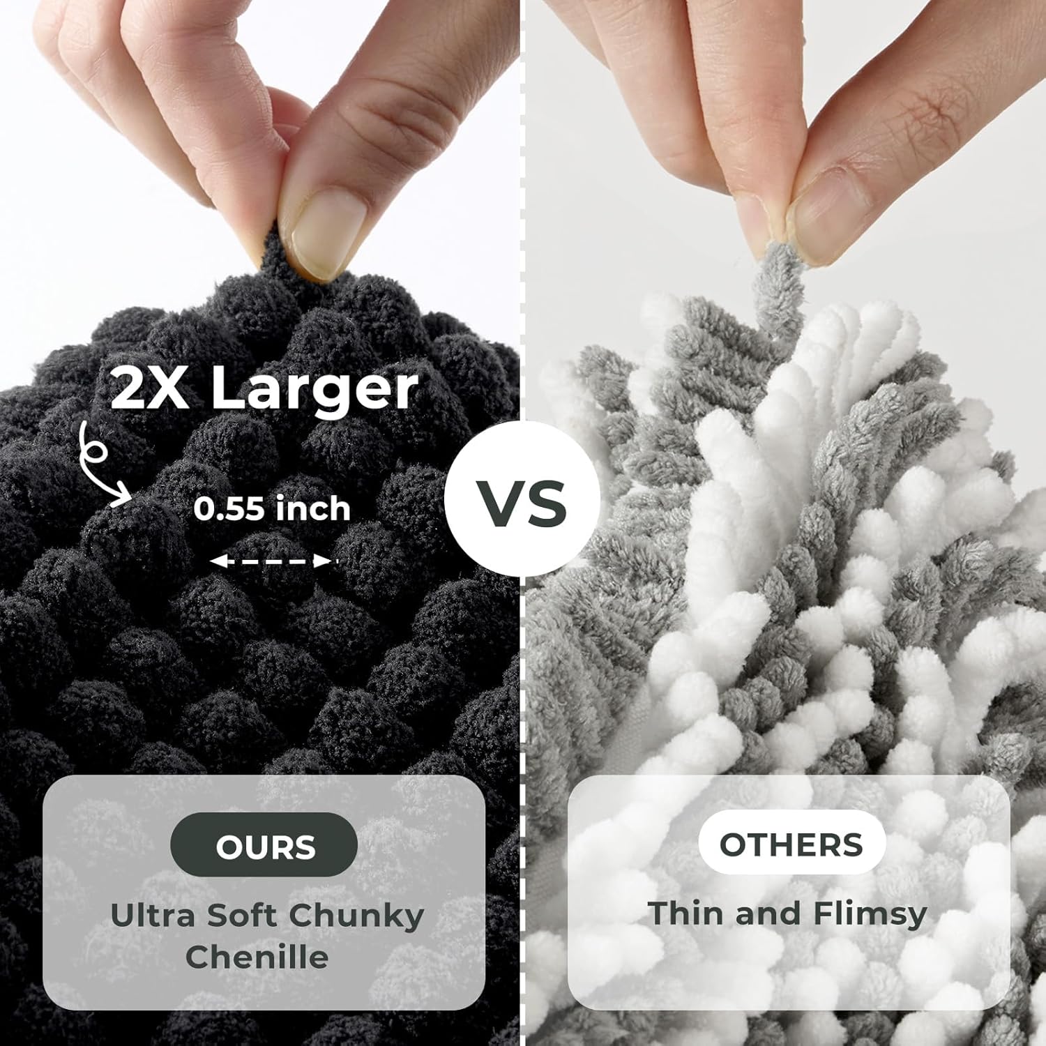 - Soft & Comfortable - Indulge in unparalleled comfort with our luxurious bath mat. Made from chunky chenille, it envelops your feet in soothing softness, providing a heavenly experience after every bath. No more stepping onto hard, cold floors - our bath rug pampers you with its plush and cozy feel.