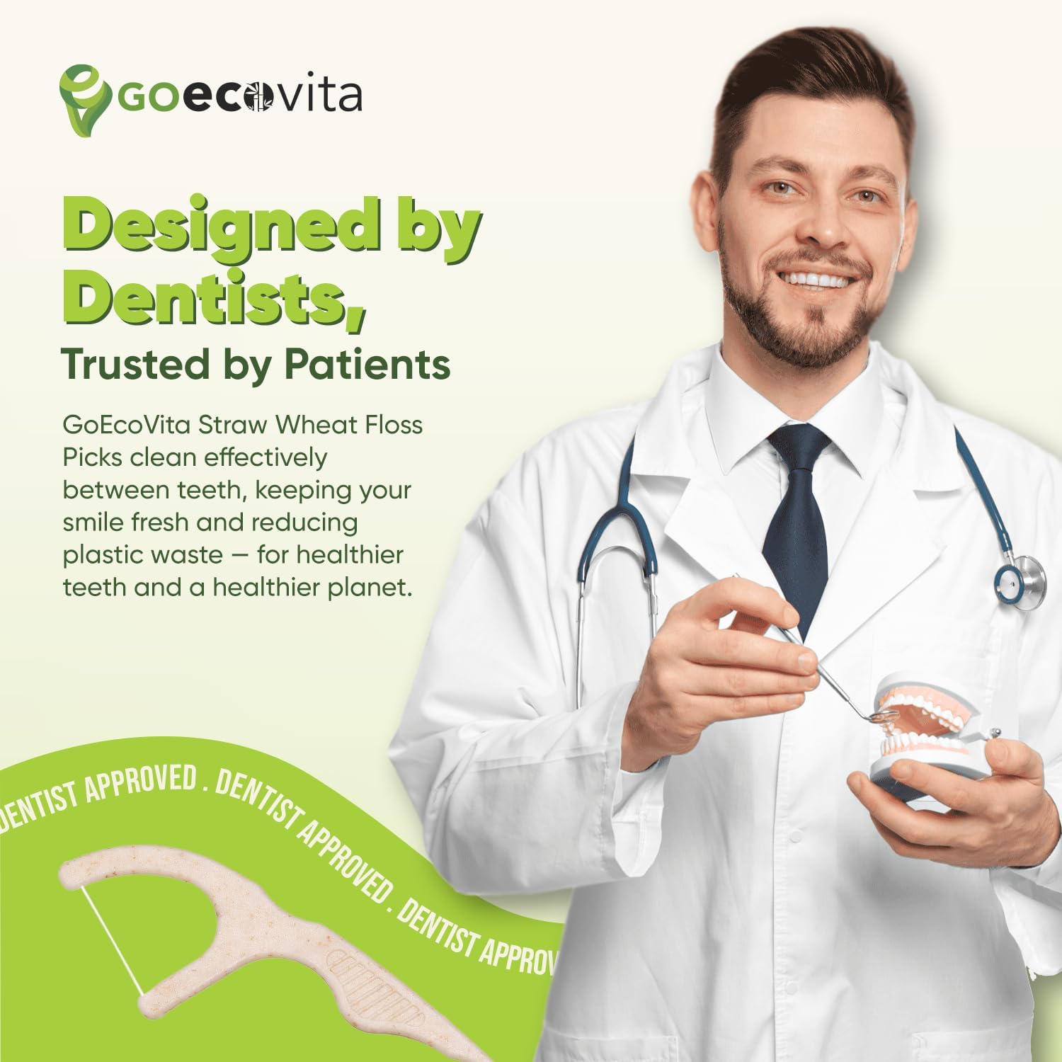Biodegradable Floss Picks (Unflavored) - Natural Straw Wheat Handle | Thin & Durable Thread for Tight Gaps! | Dental Flossers for Adults | Gentle on Gums & Teeth | Eco Friendly, Vegan (200 Pack)