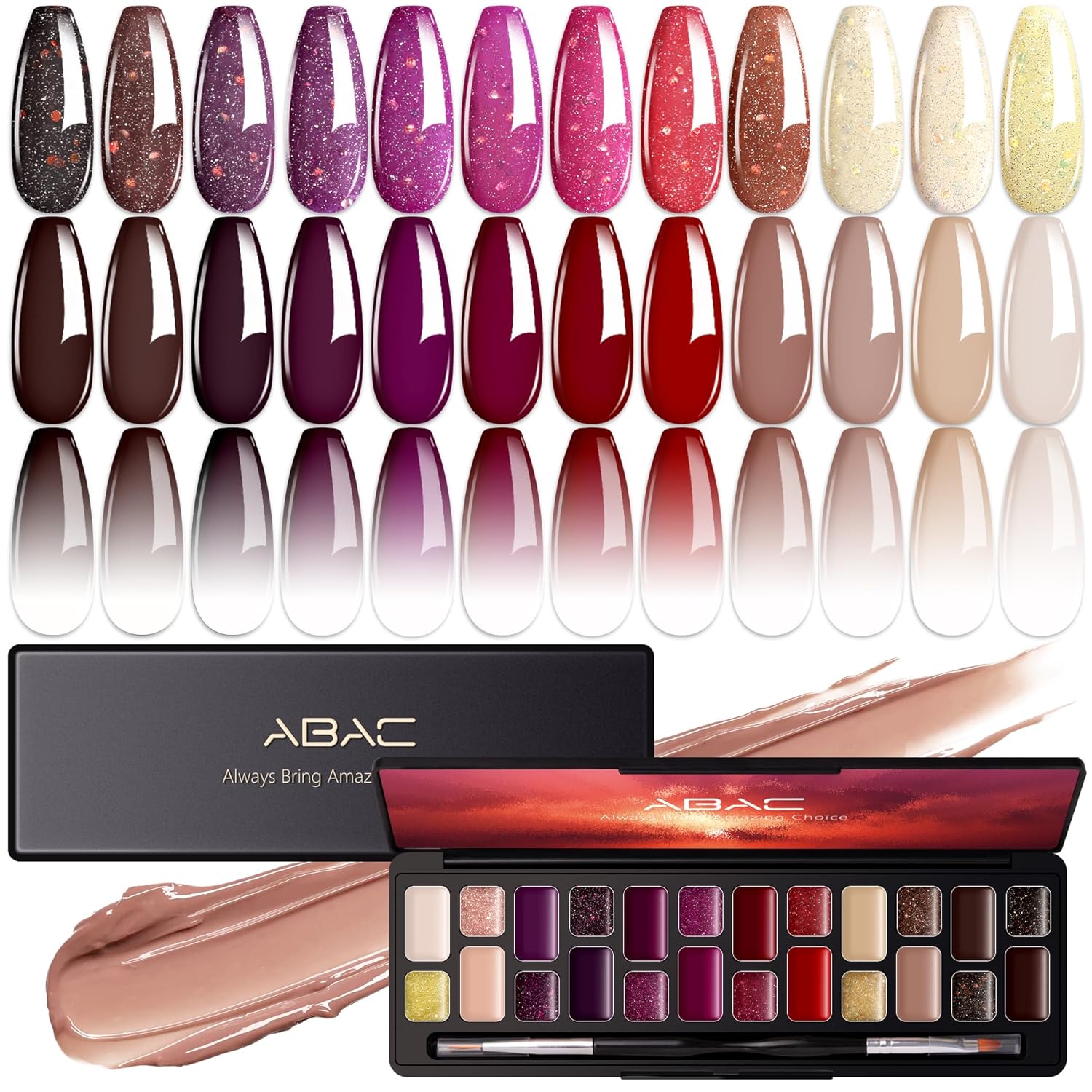 ABAC Fall & Winter Solid Gel Nail Polish Set Burgundy Red Purple Brown Colors w/Pro Brush No-Spill,Hema-Free Gifts for Women All Season