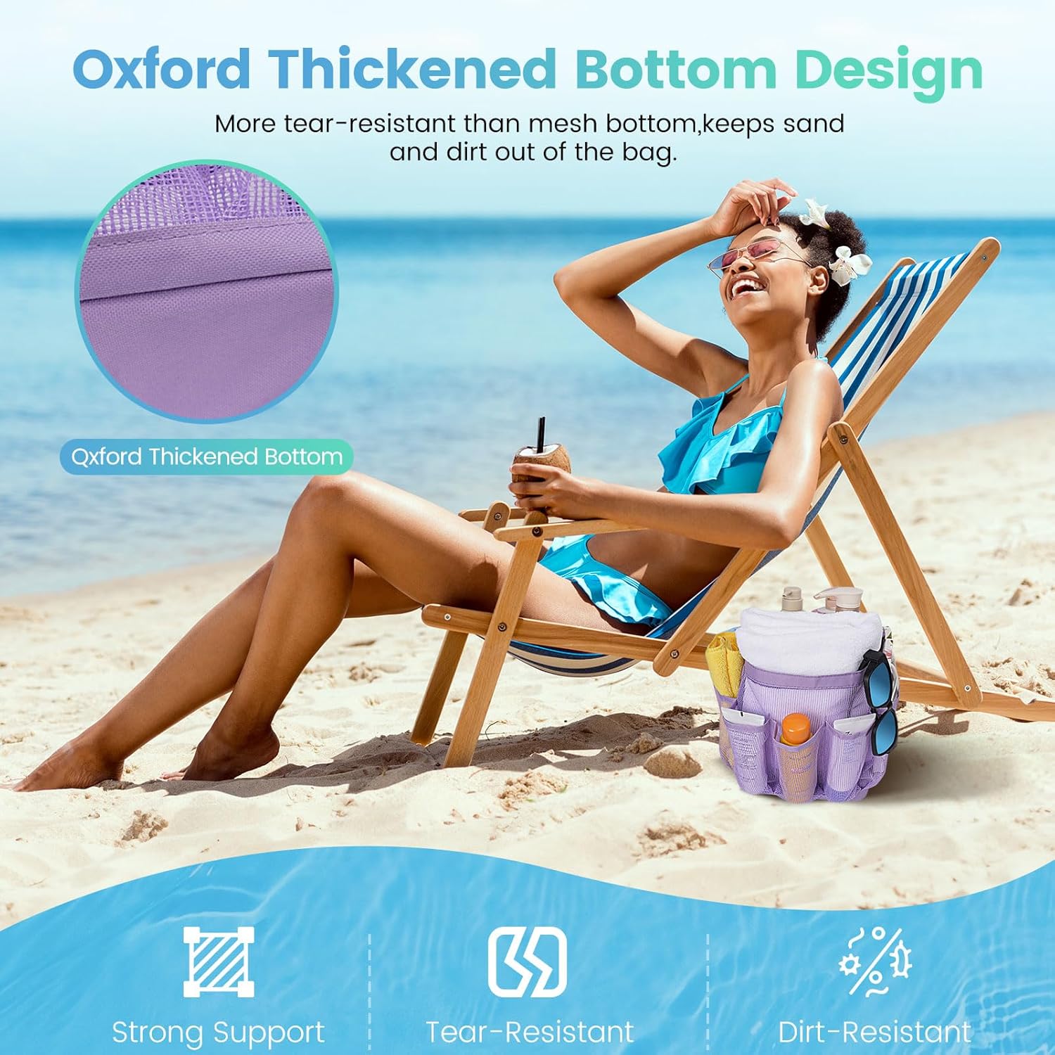 - Reinforced Base, Stronger Support:For the most essential part of this beach bag, we utilize highly strong and durable Oxford fabric for the bag base, delivering higher weight capacity, wear and tear resistance. The base supports travel essentials firmly and keeps them away from sand.