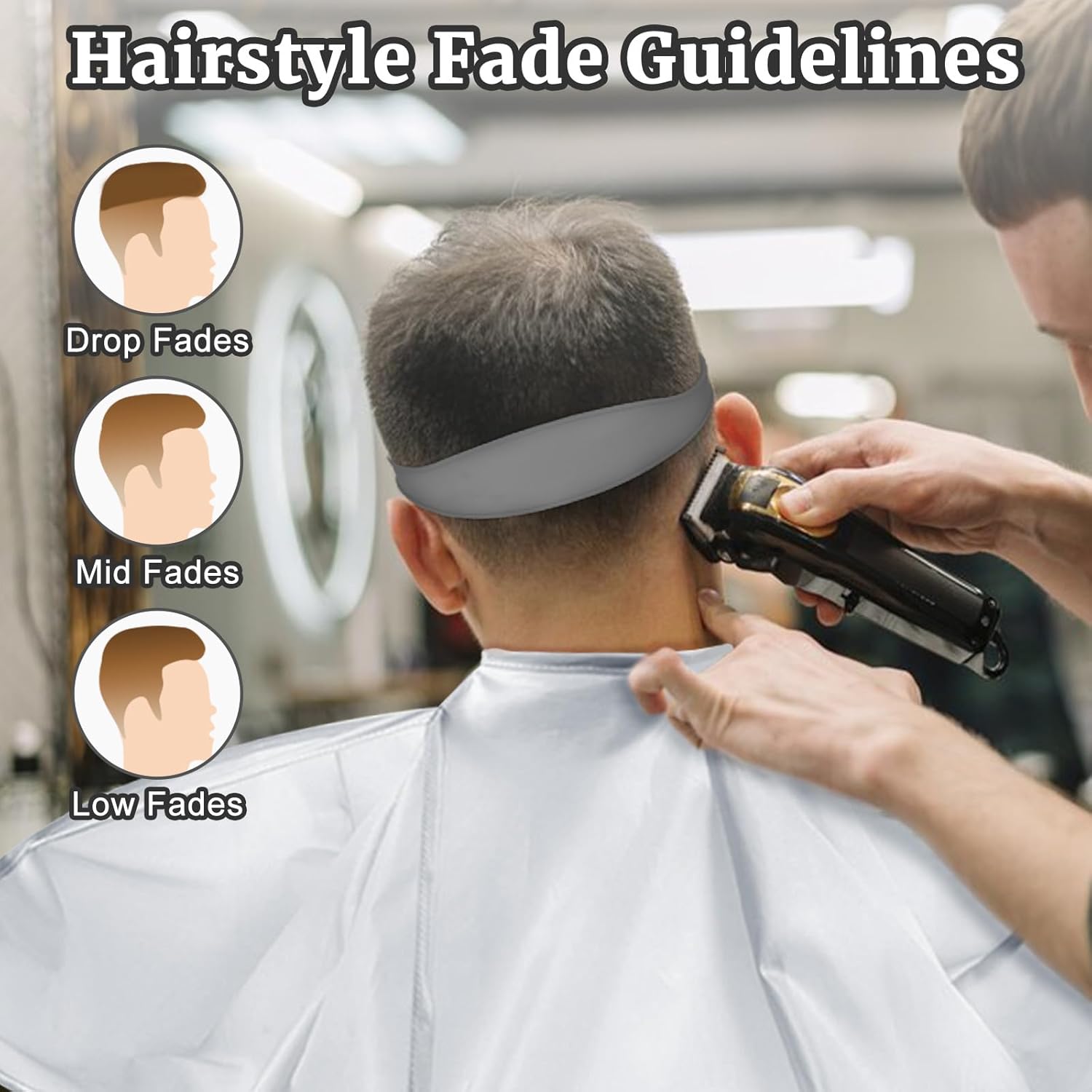 Fade Haircut Guide for Men, Self Haircut Kit for Men, Include Hair Cutting Guide & Cape Umbrella & Comb, Neckline Shaving Templat, DIY Hair Cutting Accessories Tools for Home (Grey)