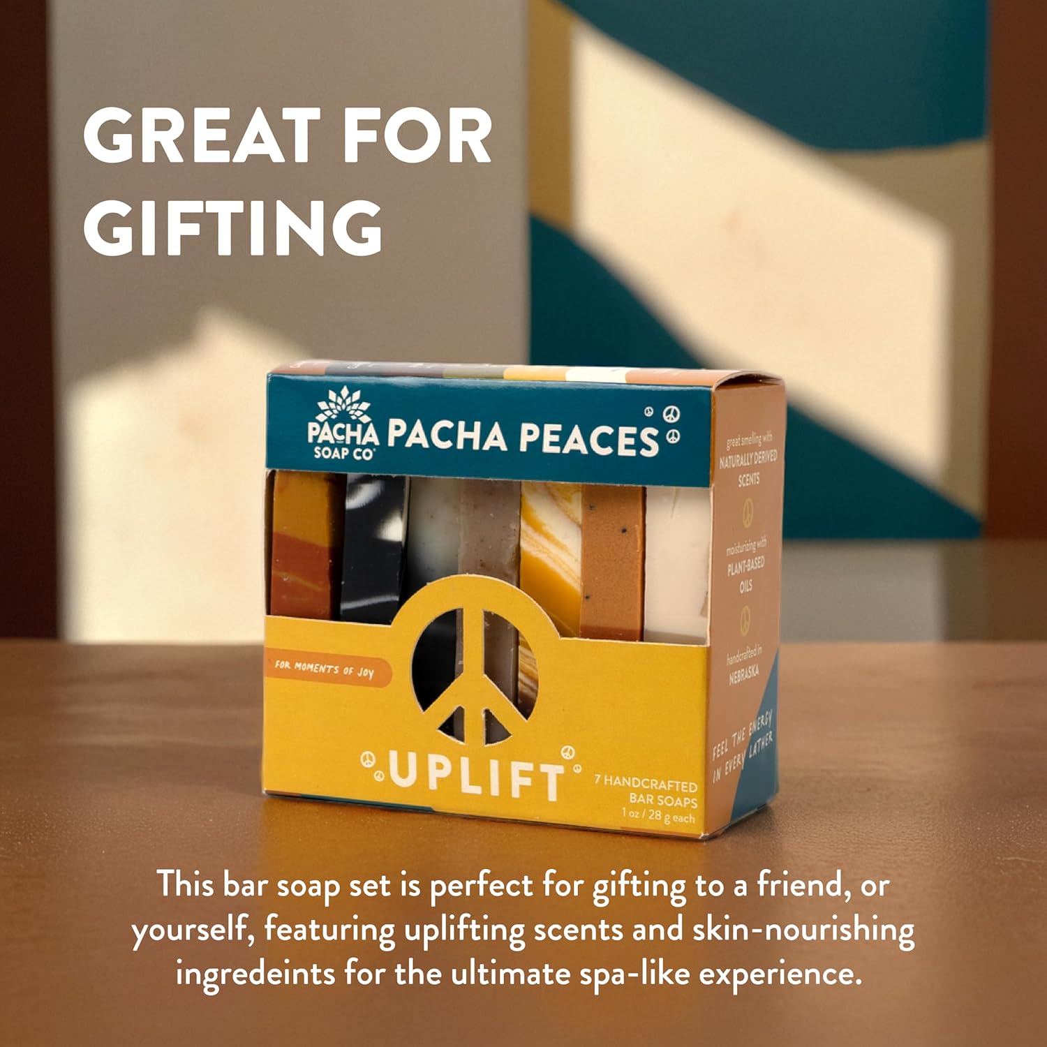 Pacha Soap Co. Bar Soap, Pacha Peaces, Uplift, 2-Pack (4 oz ea) - Premium, Handcrafted, Hydrating, Natural Face Wash, Hand Cleanser, Body Wash, Soothing Essential Oils
