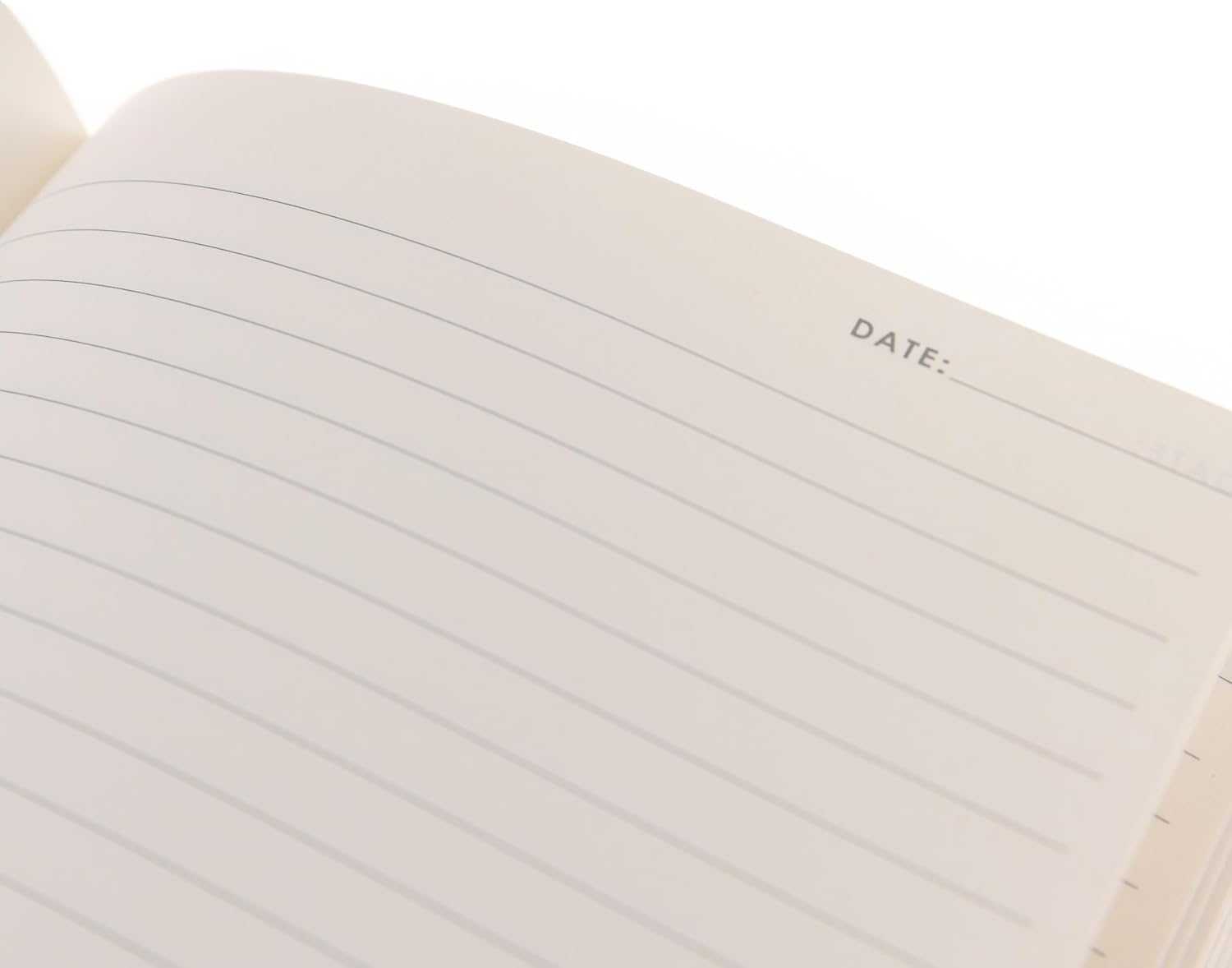 - QUALITY MATERIALS: With 192 lined pages of premium, off-white paper, this journal is beautiful to write in; for easy reference, the top of each page features a designated space to mark the date of each note, and a ribbon marker quickly takes you to the last entry